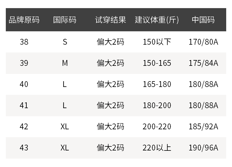 - 尺码说明