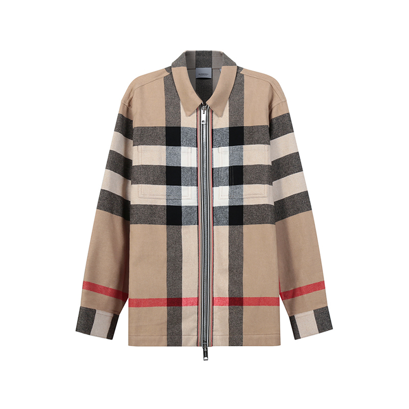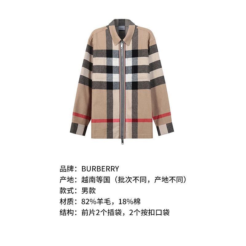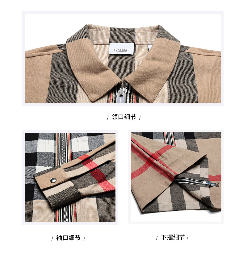 自营Burberry 博柏利/巴宝莉 男款美拉德风羊毛拉链长袖衬衫外套典藏米色多色格纹 80501351