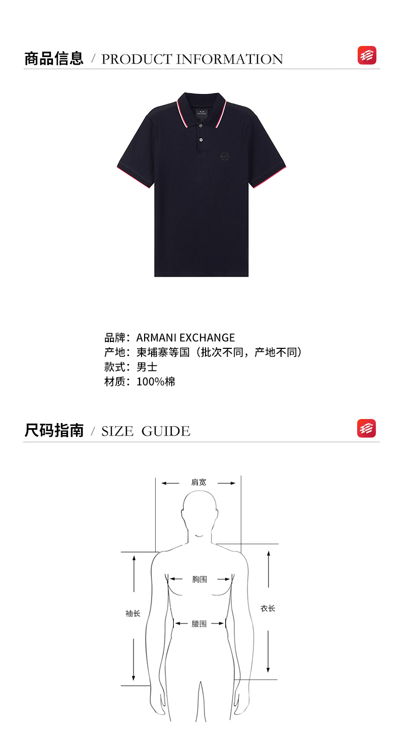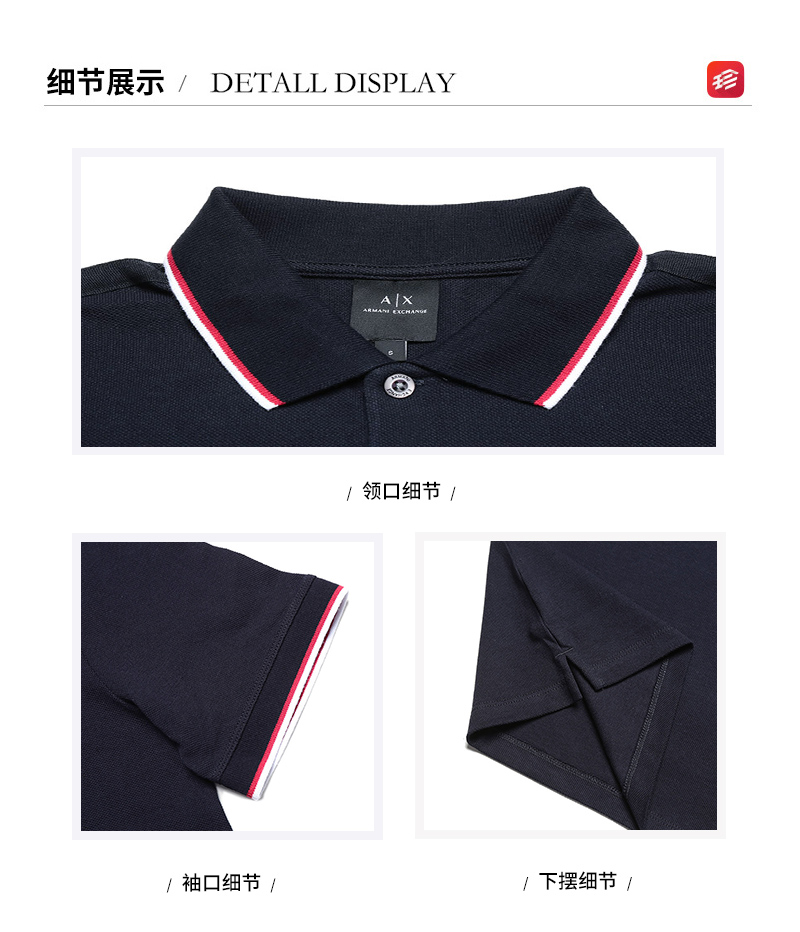 自营Armani Exchange 阿玛尼 【新品】男士棉质短袖POLO衫海军蓝LOGO图案 8NZF75 Z8M5Z 1510
