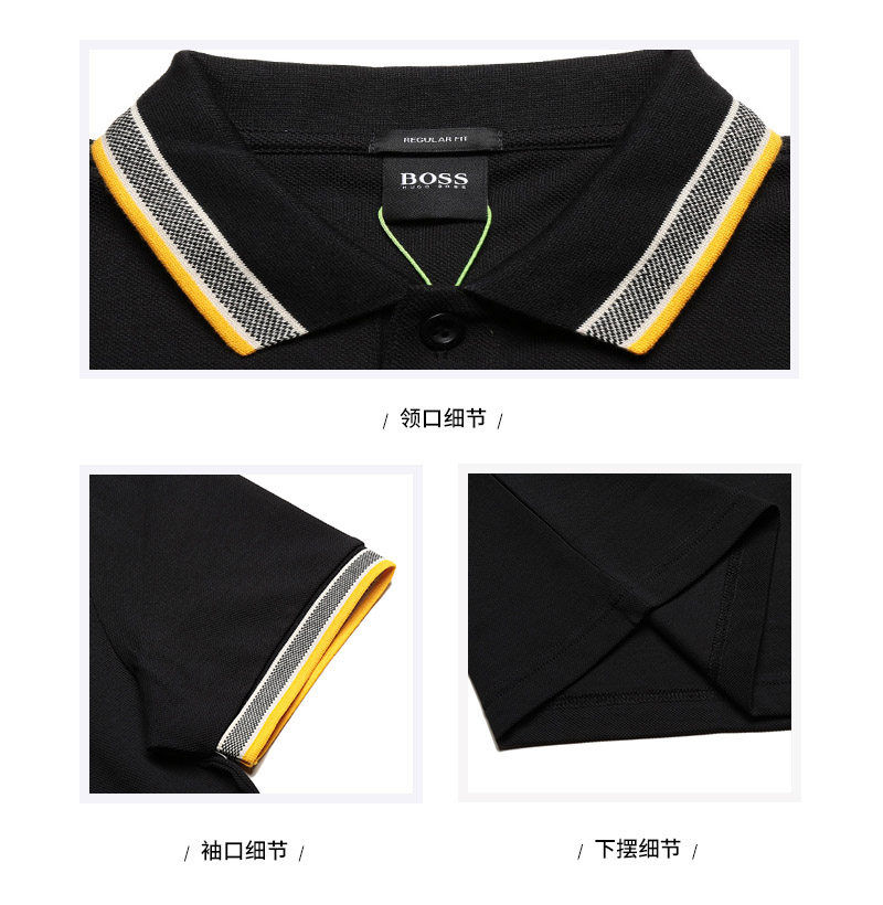 自营Hugo Boss 雨果博斯男士棉质短袖POLO衫炭黑色LOGO刺绣 50398302 016