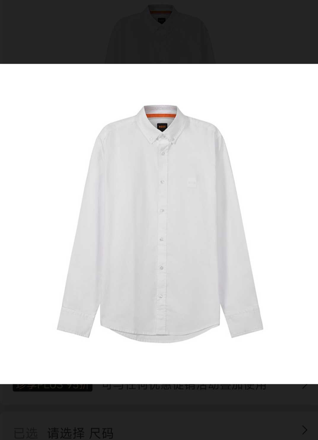 自营Hugo Boss 雨果博斯 男士棉质长袖衬衫白色 50467324 100