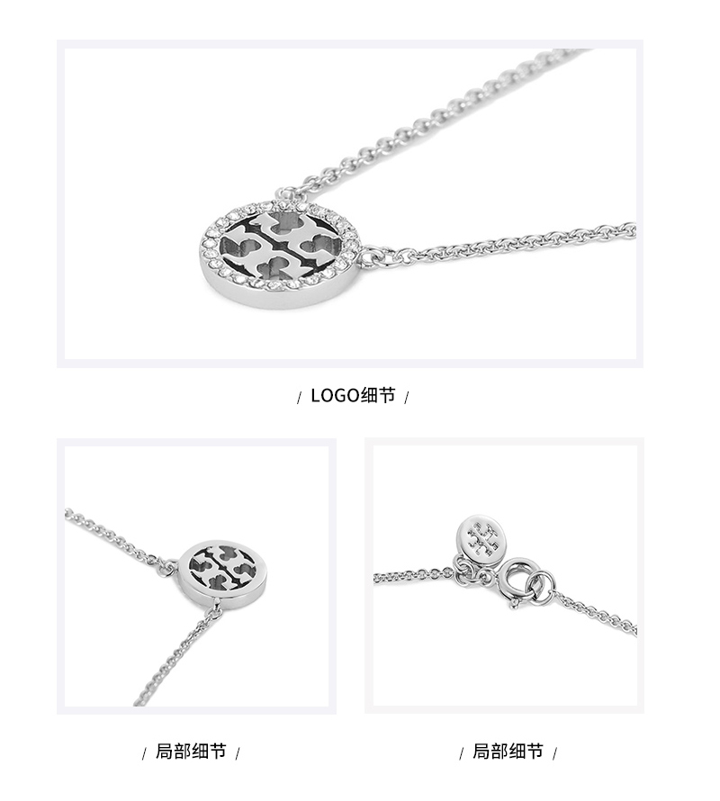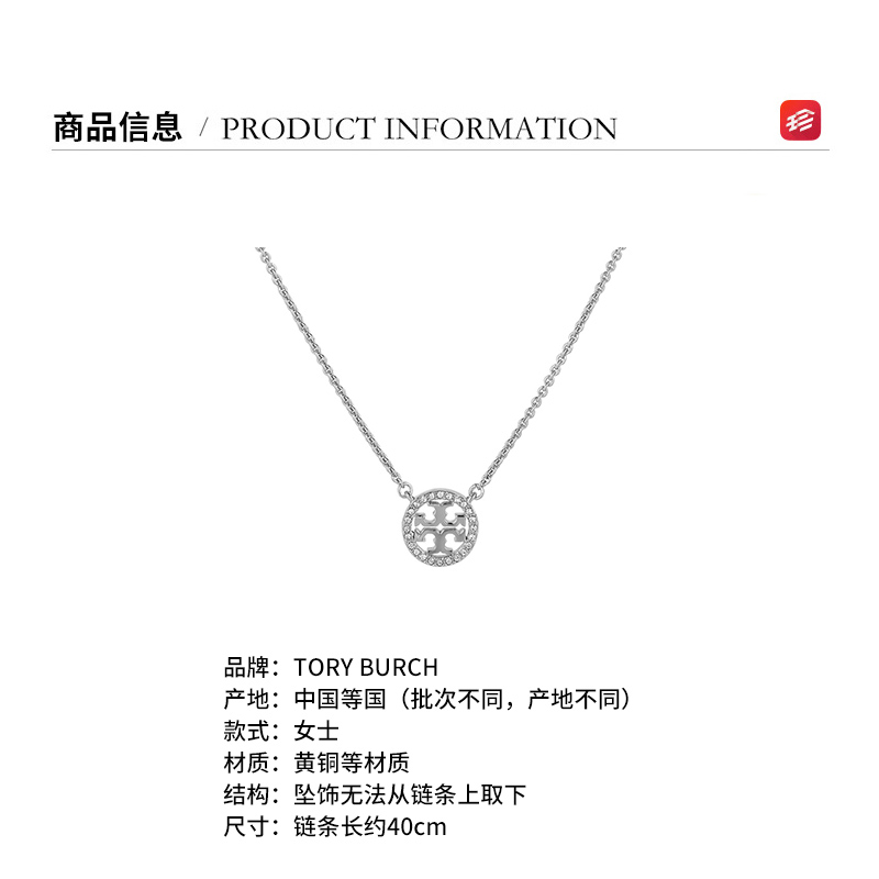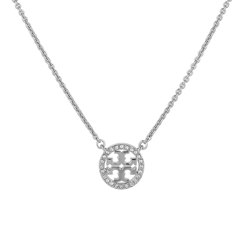 自营Tory Burch 汤丽柏琦 【新品】 TB饰品 女士MILLER系列黄铜等材质双T LOGO密镶吊坠项链Tory银 53420 042