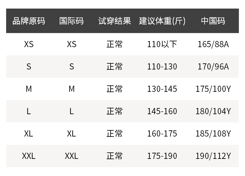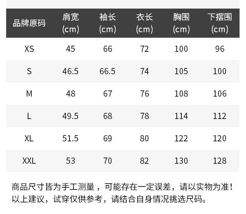 - 尺码说明