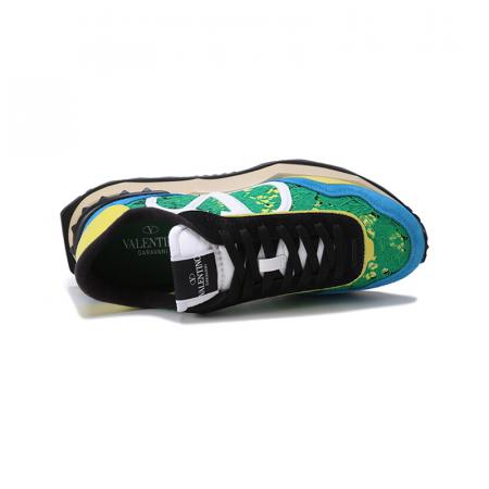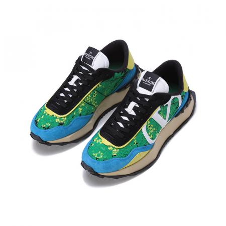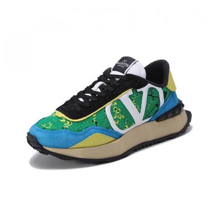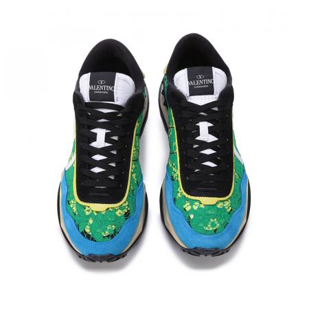 自营Valentino 华伦天奴 男士织物配皮Lacerunner蕾丝网眼系带休闲运动鞋绿色蓝色多色 XY2S0F28 ZUX B08