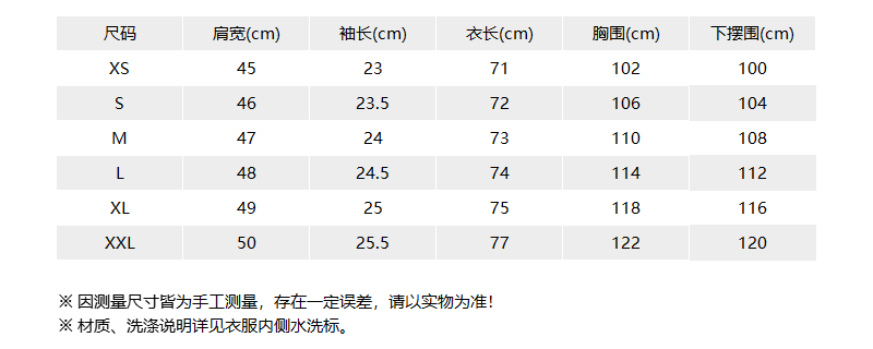 - 尺码说明