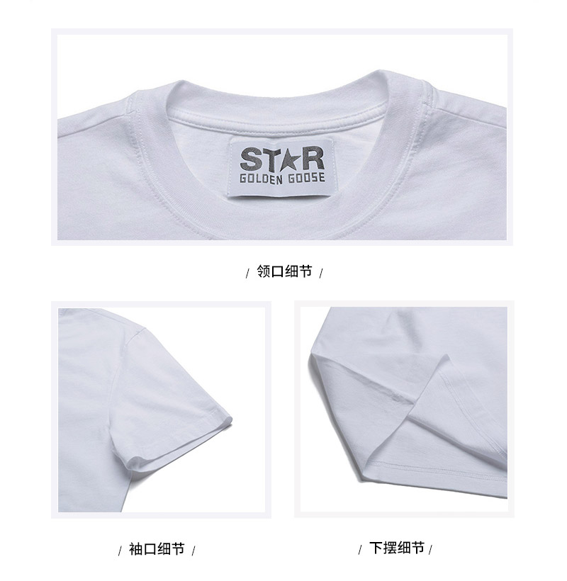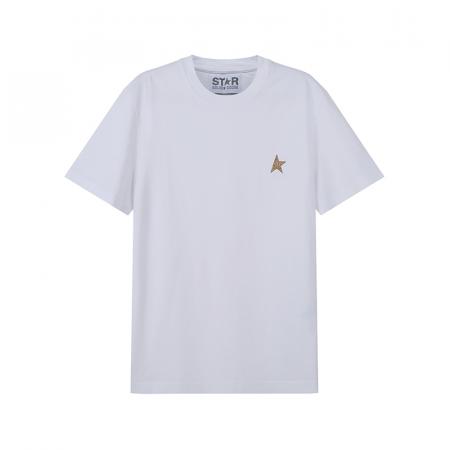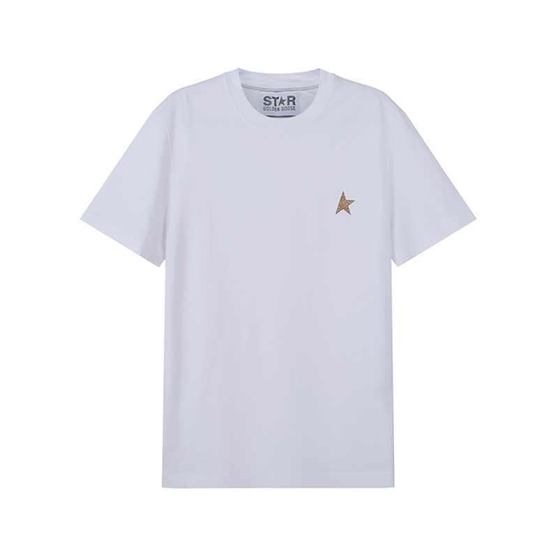 自营Golden Goose Deluxe Brand 男士棉质Star Collection圆领短袖T恤白色金色亮片星星图案 GMP00880 P000594 10272