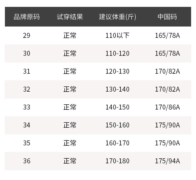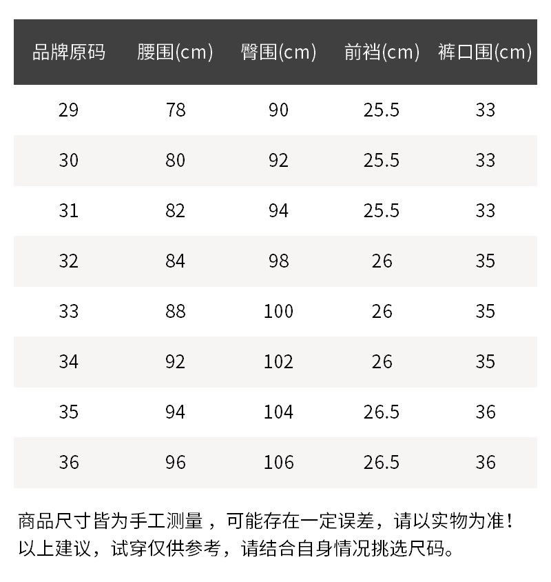 - 尺码说明