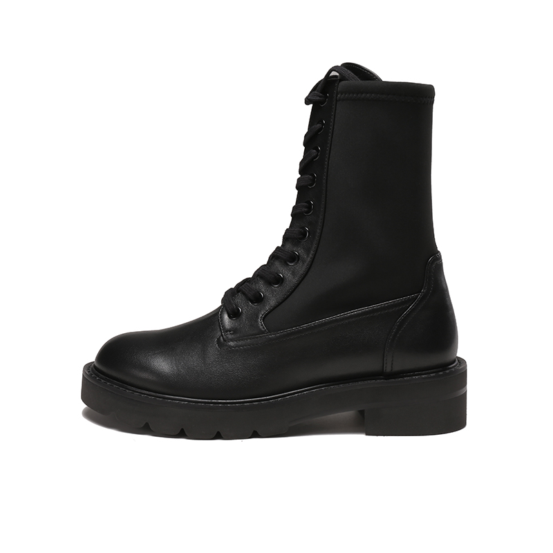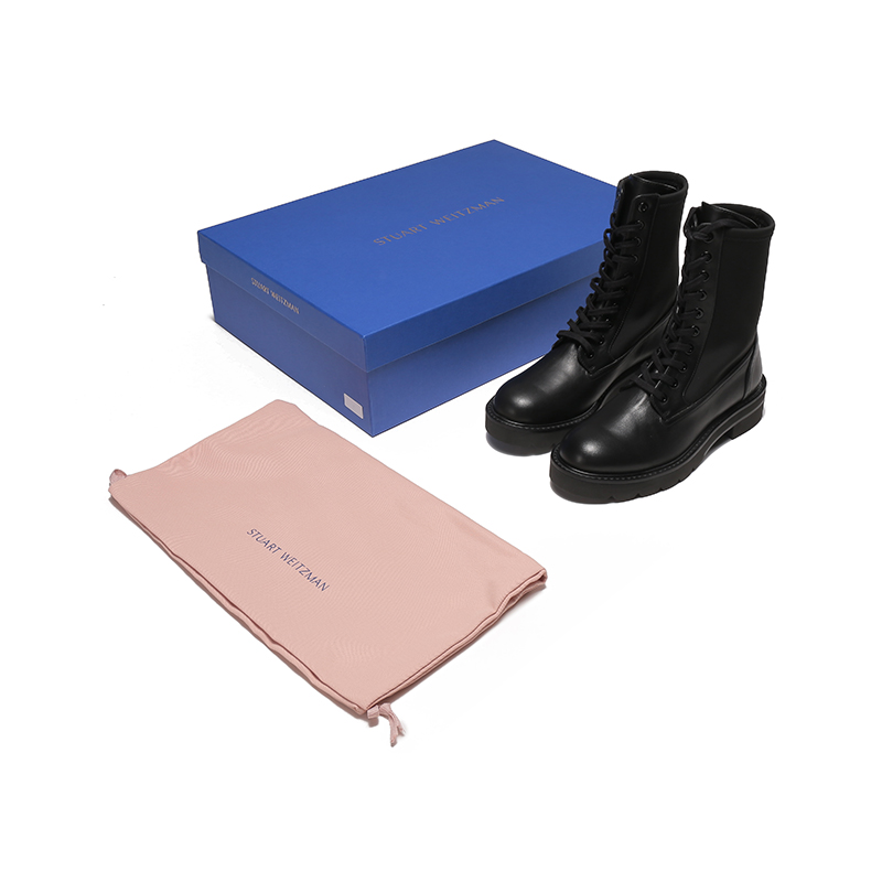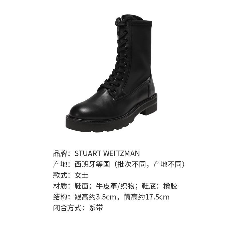 自营Stuart Weitzman 思缇韦曼 女士牛皮革/织物系带靴子短靴马丁靴黑色 ANDE LIFT BOOTIE BLK CIA CHIFF CALF STR NEOPRENE