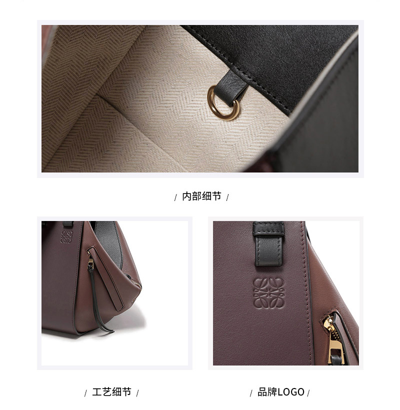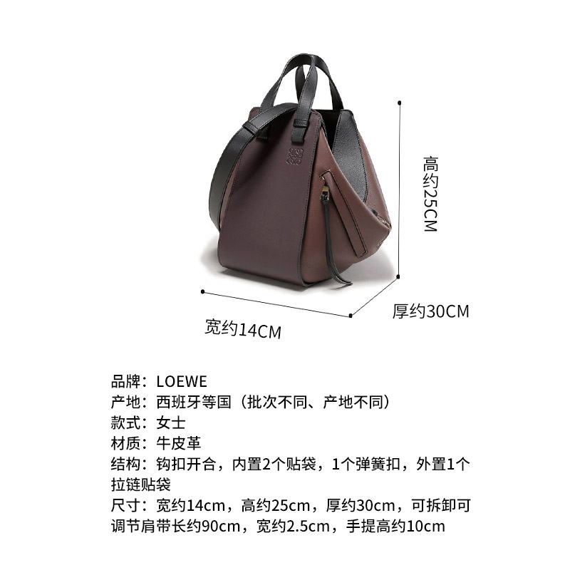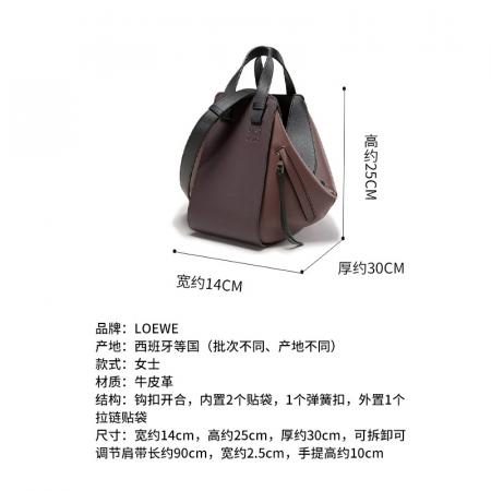 自营Loewe 罗意威 女包 女士Hammock系列牛皮革手提单肩包斜挎包吊床包棕色多色小号 326 30KS35 6203
