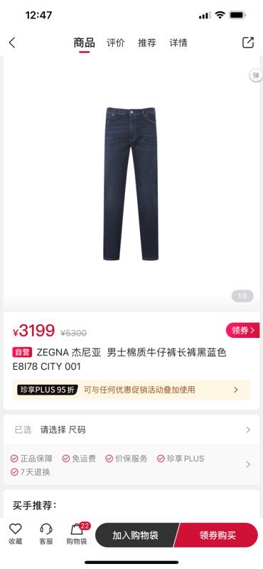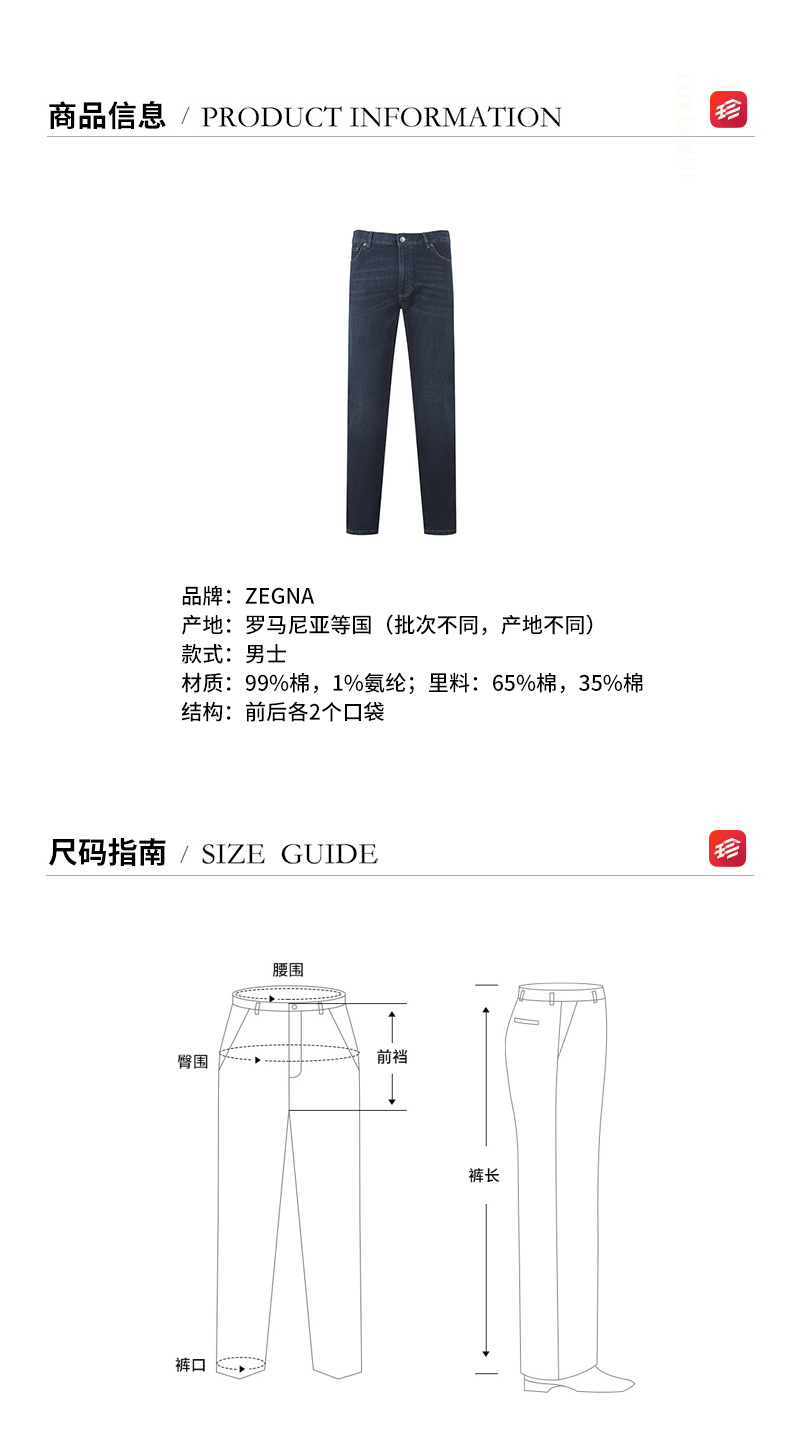 自营ZEGNA 杰尼亚 男士棉质牛仔裤长裤黑蓝色 E8I78 CITY 001