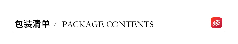 - 包装及附件:主商品×1吊牌×1防伪贴(防伪吊牌)×1(一经拆毁,不予退换)