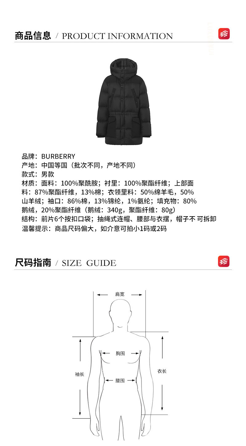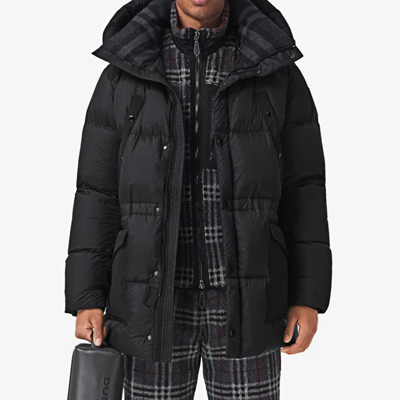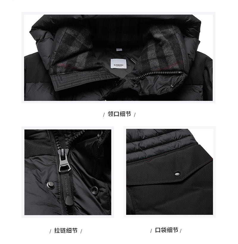 自营Burberry 博柏利 男款连帽羽绒服外套黑色徽标贴饰 80438451