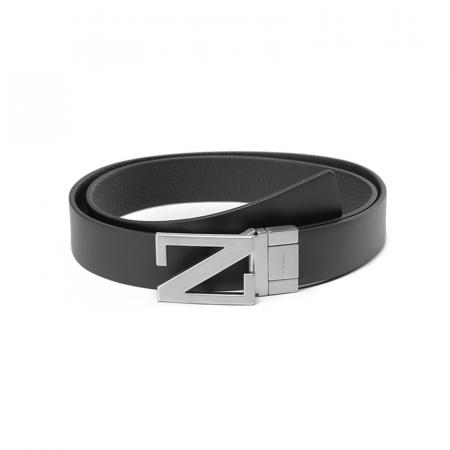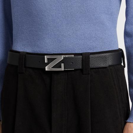 自营ZEGNA 杰尼亚 男士牛皮Z字扣头可裁剪双面旋转皮带腰带3.5cm黑色 LHBOV B027AZ NER