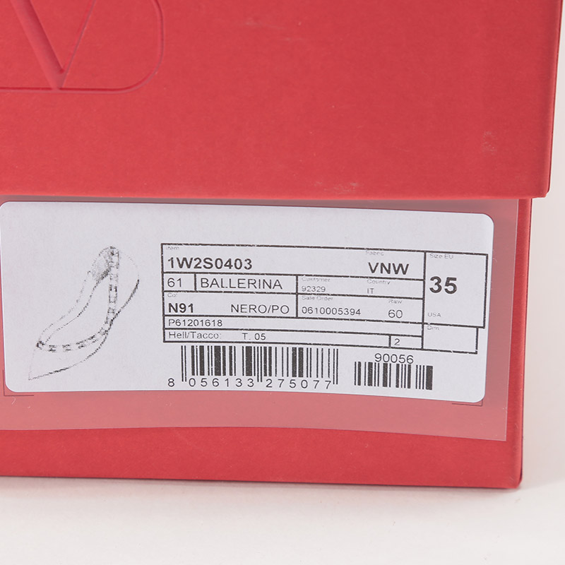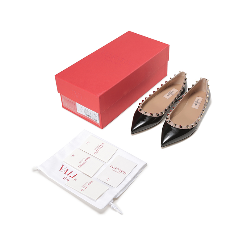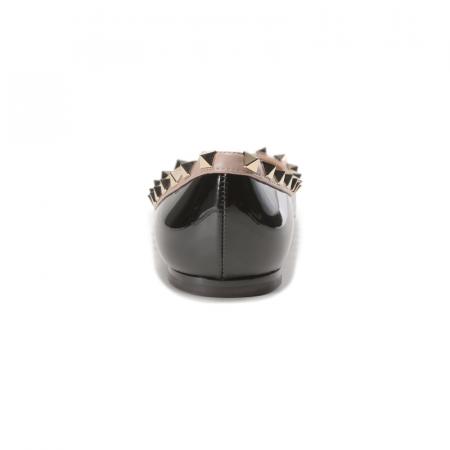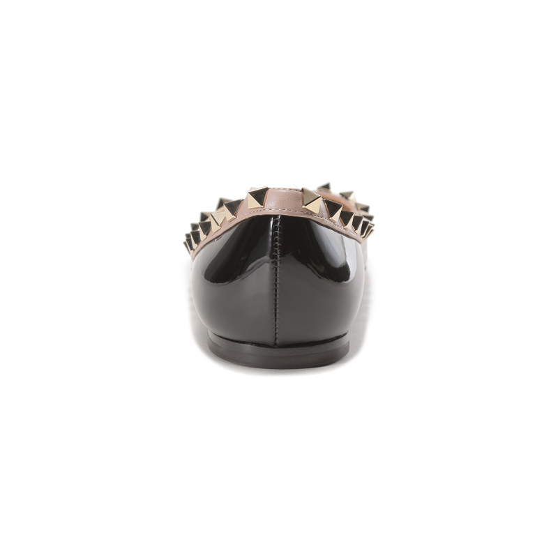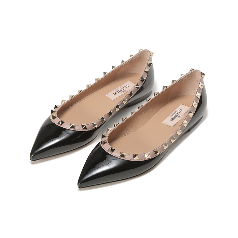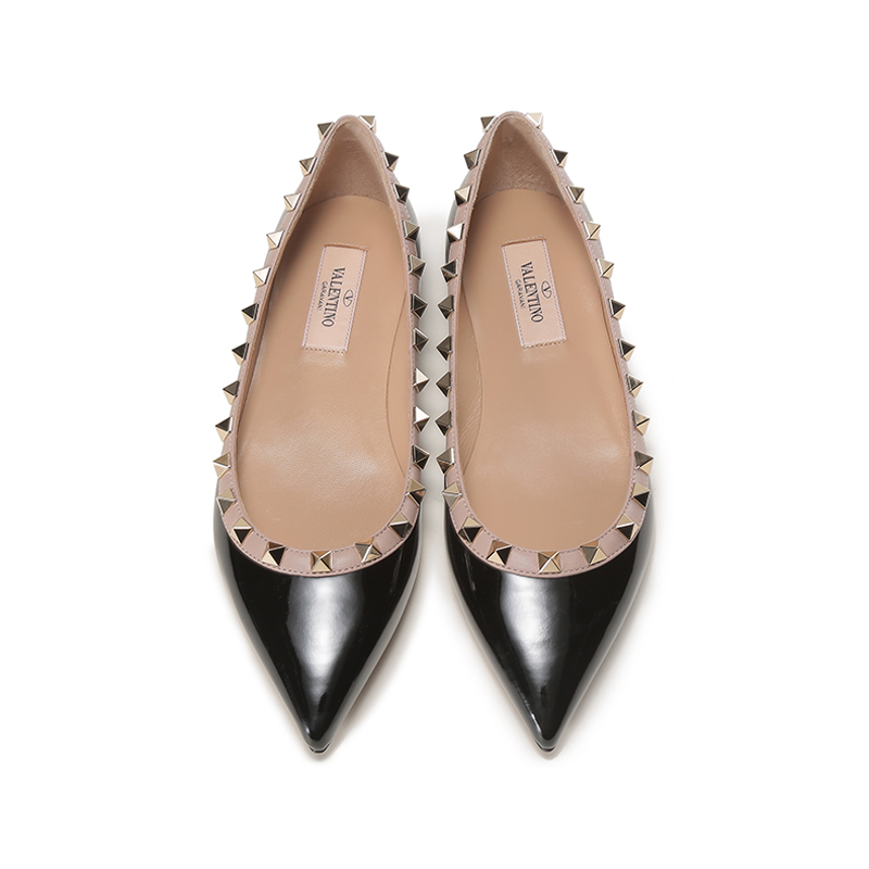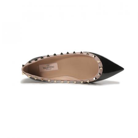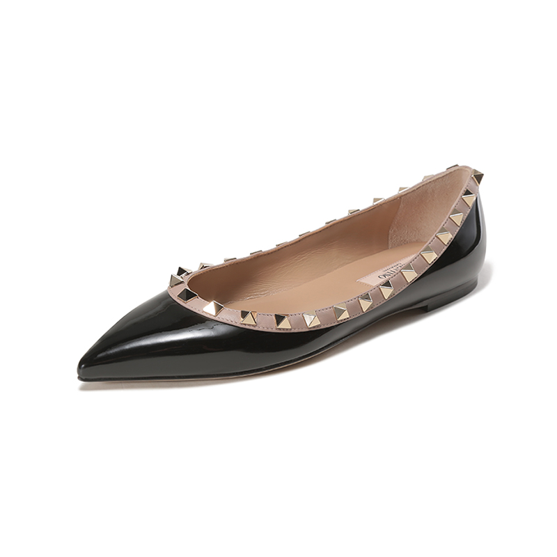 自营Valentino 华伦天奴女士漆皮ROCKSTUD铆钉装饰尖头浅口芭蕾平底鞋单鞋黑色灰粉色 1W2S0403 VNW N91