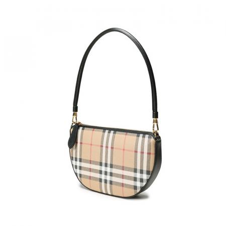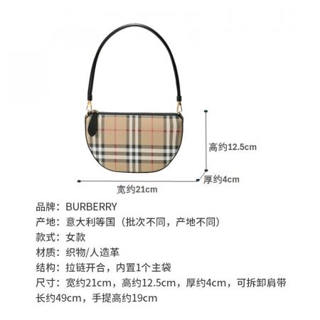 自营Burberry 博柏利女款织物/人造革Olympia埃伦匹亚手提单肩包腋下包手拿包典藏米色格纹 80580061