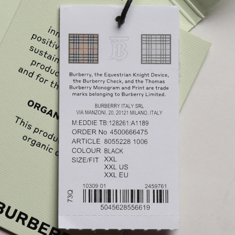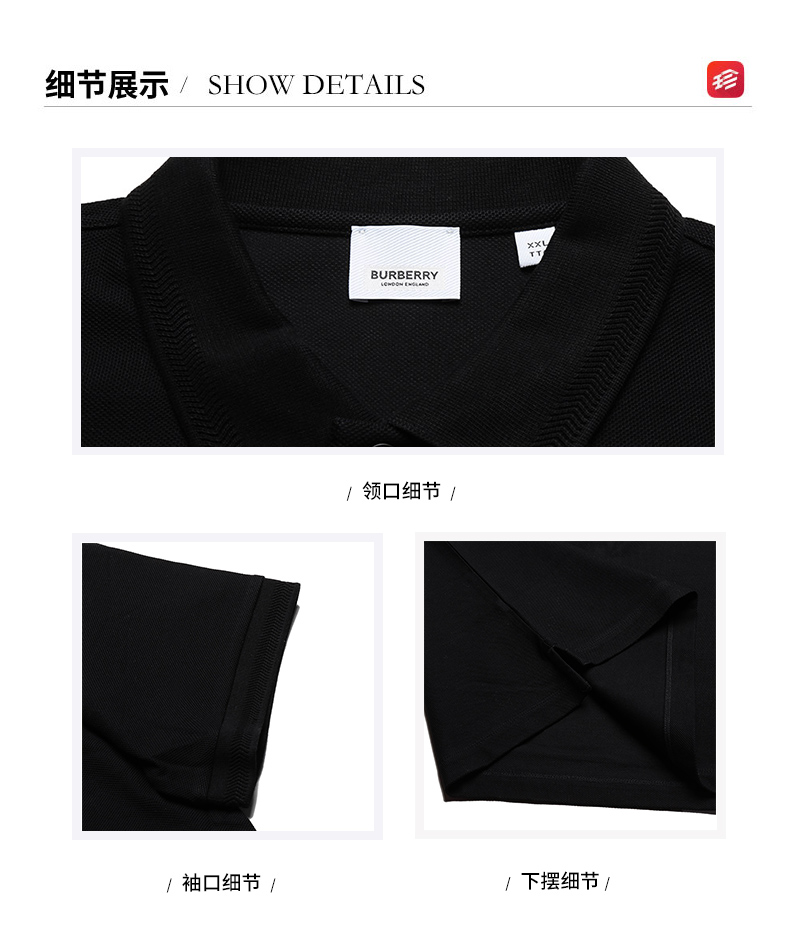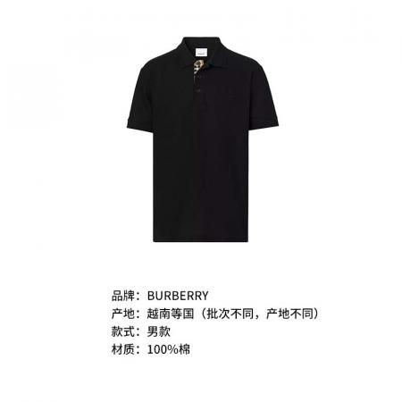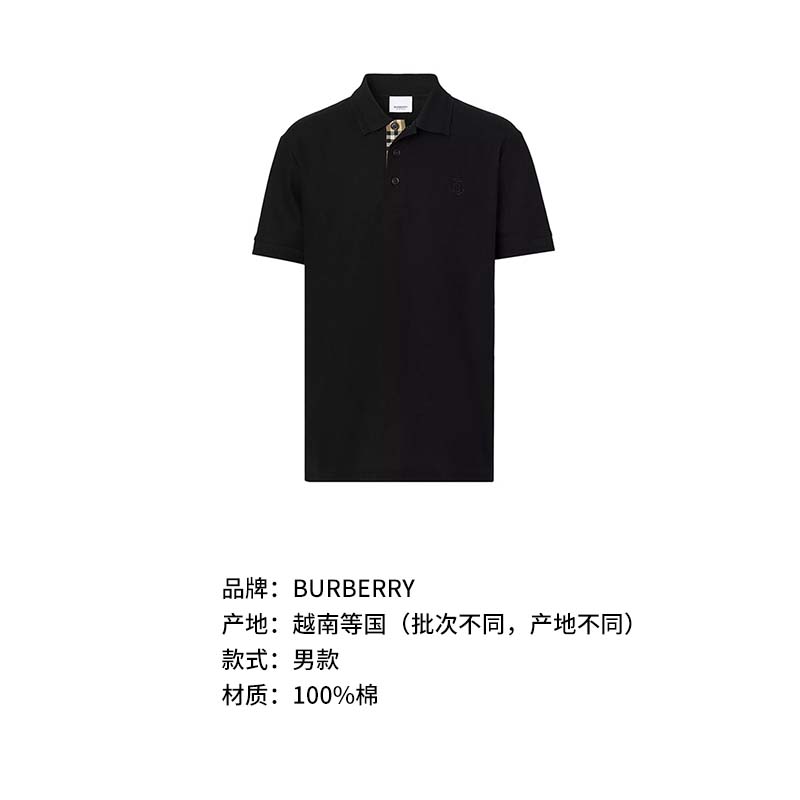 自营Burberry 博柏利 男款棉质短袖POLO衫黑色TB专属标识刺绣 80552281