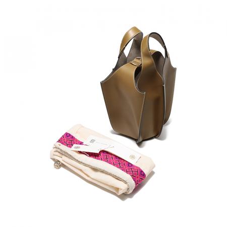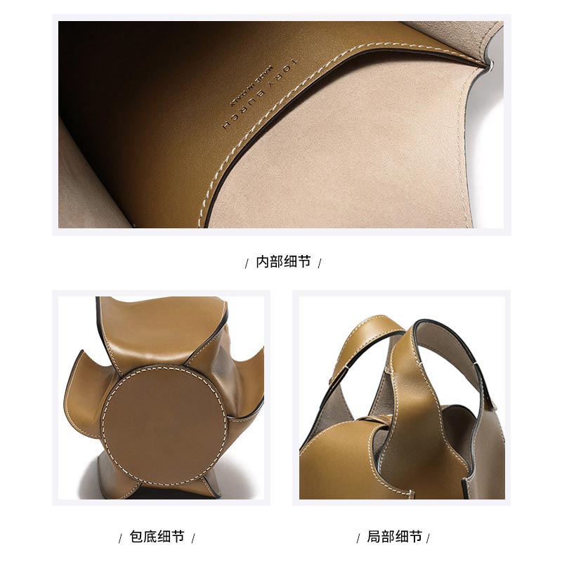 自营Tory Burch 汤丽柏琦女包 皮革拼接LAMPSHADE手提包灯罩包鹪鹩棕色 89615 238