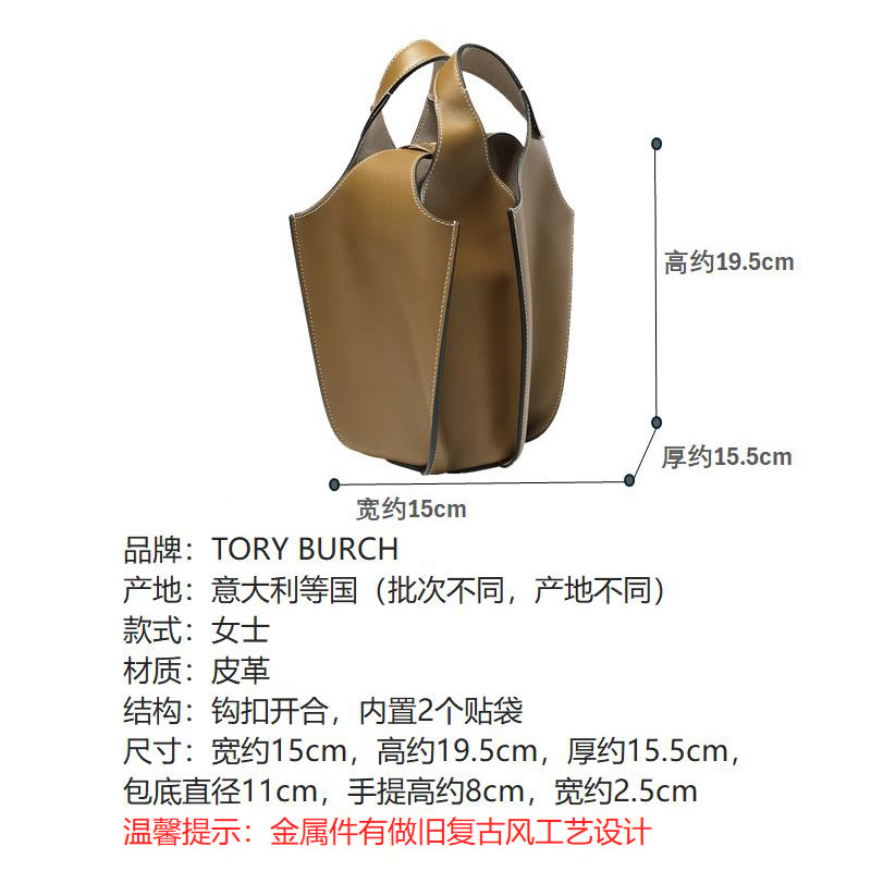 - 规格:宽约15cm,高约19.5cm,厚约15.5cm,包底直径11cm,手提高约8cm,宽约2.5cm