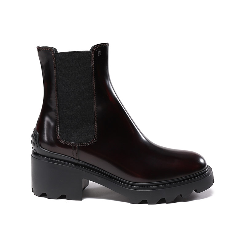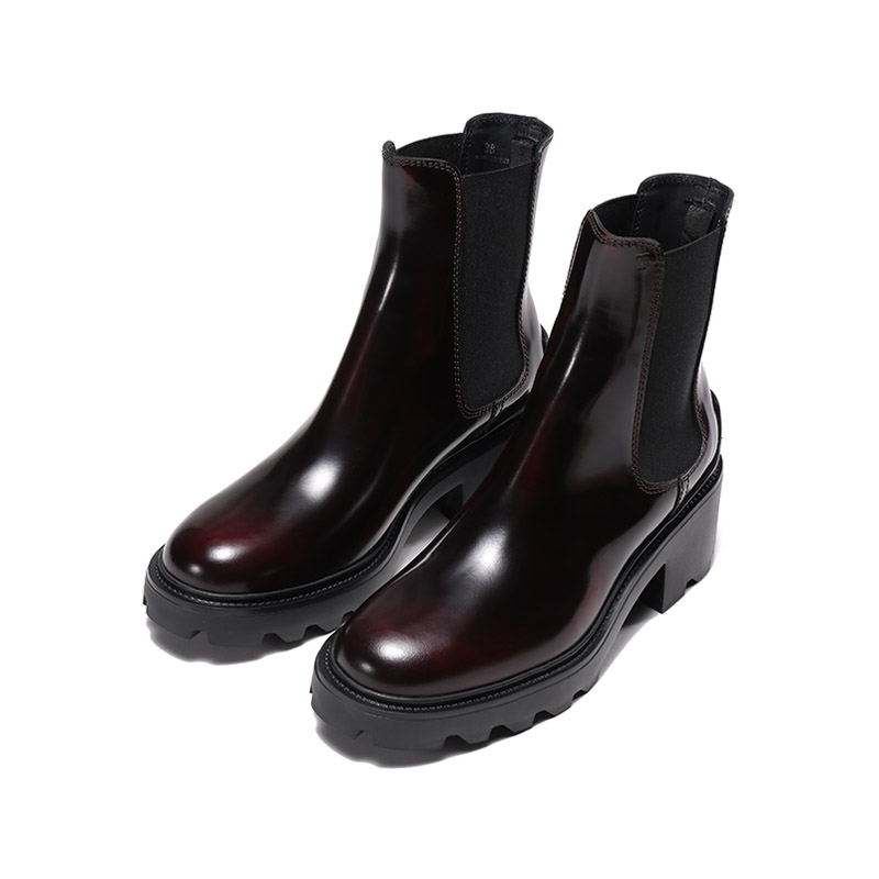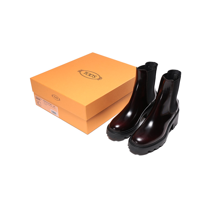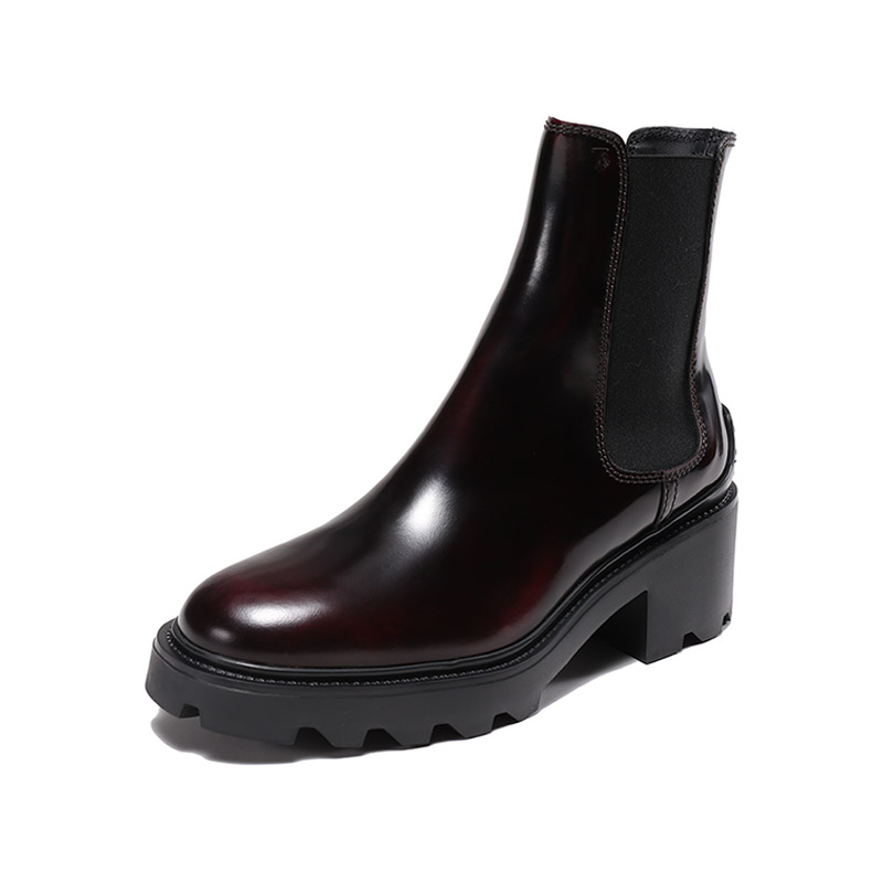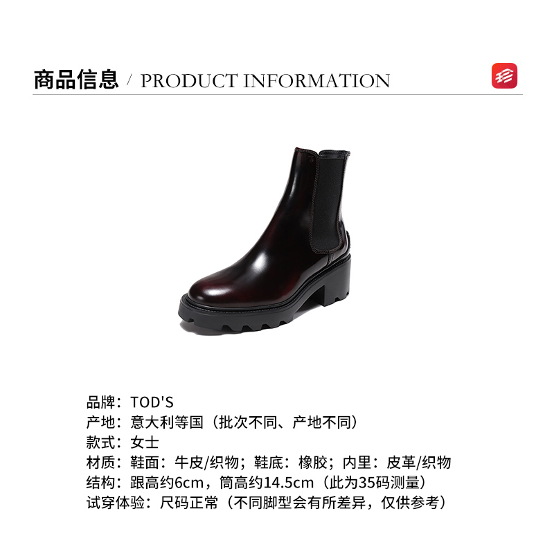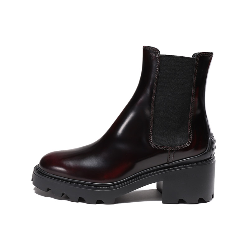 自营Tod'S 托德斯 【新品】女士牛皮/织物粗高跟靴子短靴踝靴酒红色跟高6cm XXW08D0EA10AKTR810