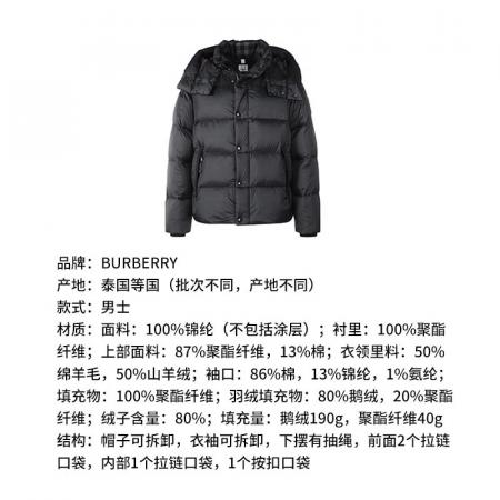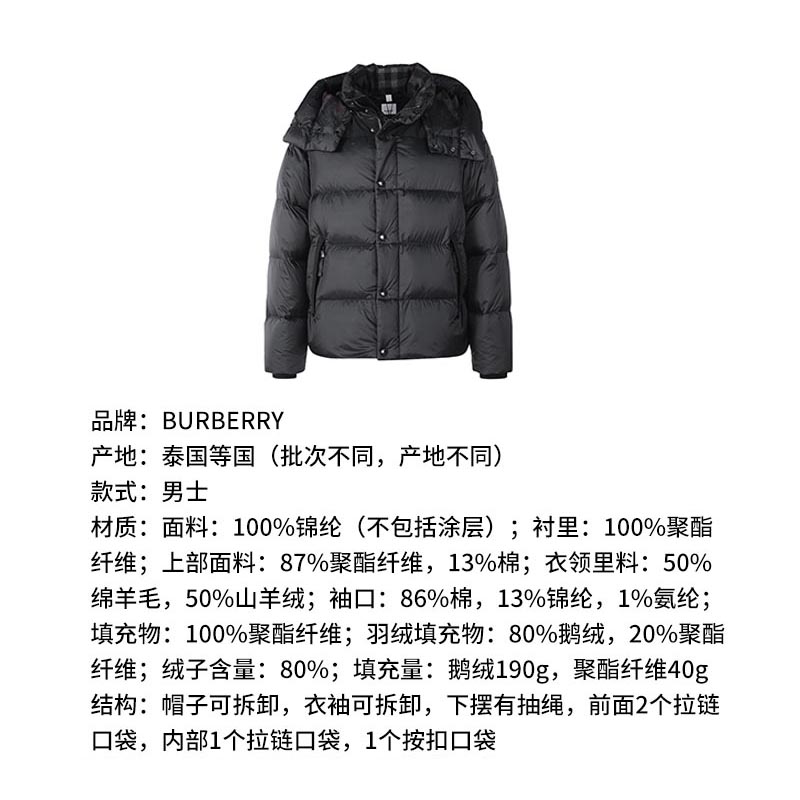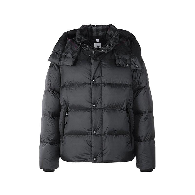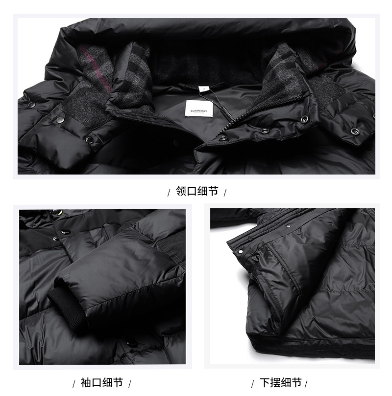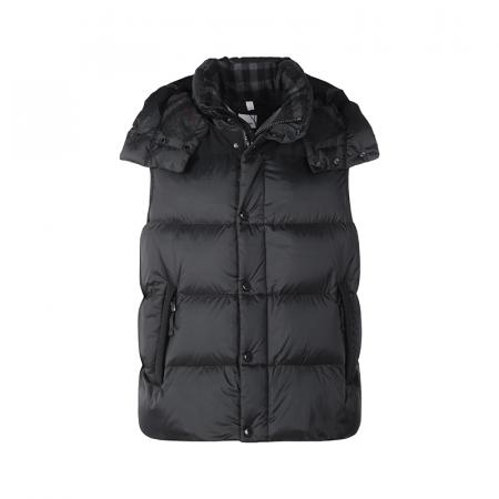 自营Burberry 博柏利 男士黑色硅胶徽标鹅绒可拆式衣袖连帽羽绒服上衣外套马甲 80591391