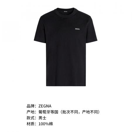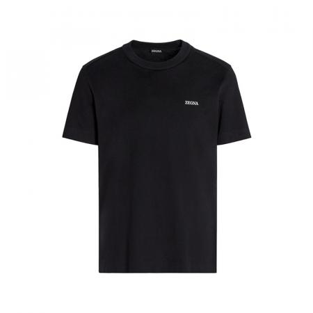 自营ZEGNA 杰尼亚【新品】 男士棉质黑色小LOGO刺绣圆领短袖T恤 E7360A5 B760 K09