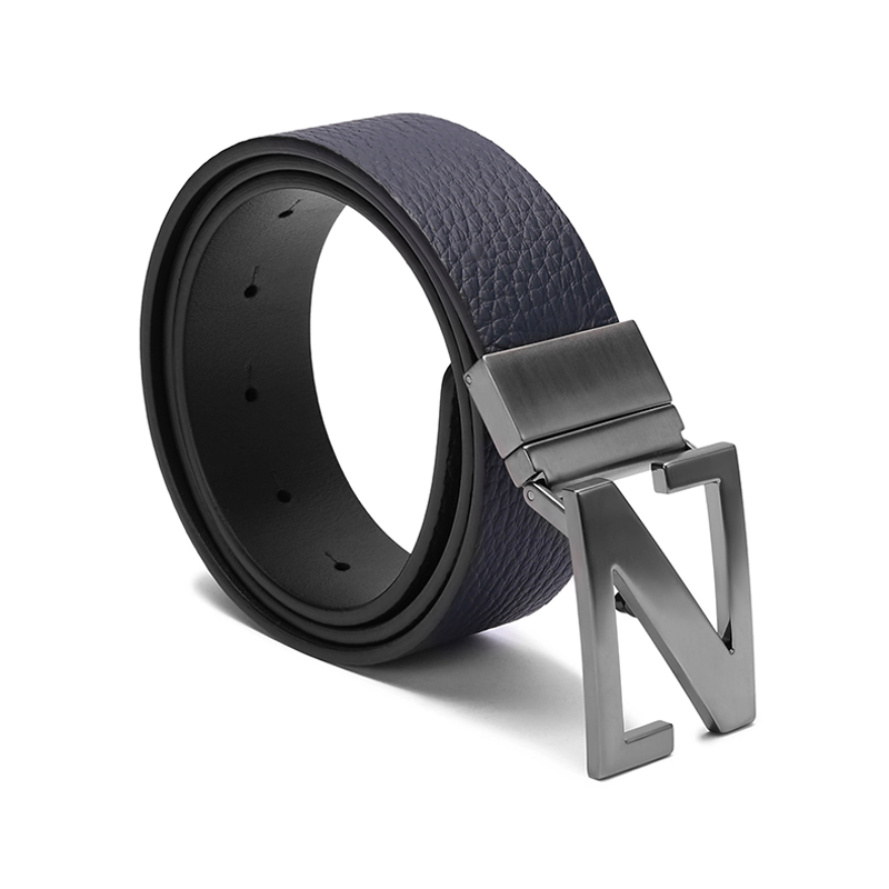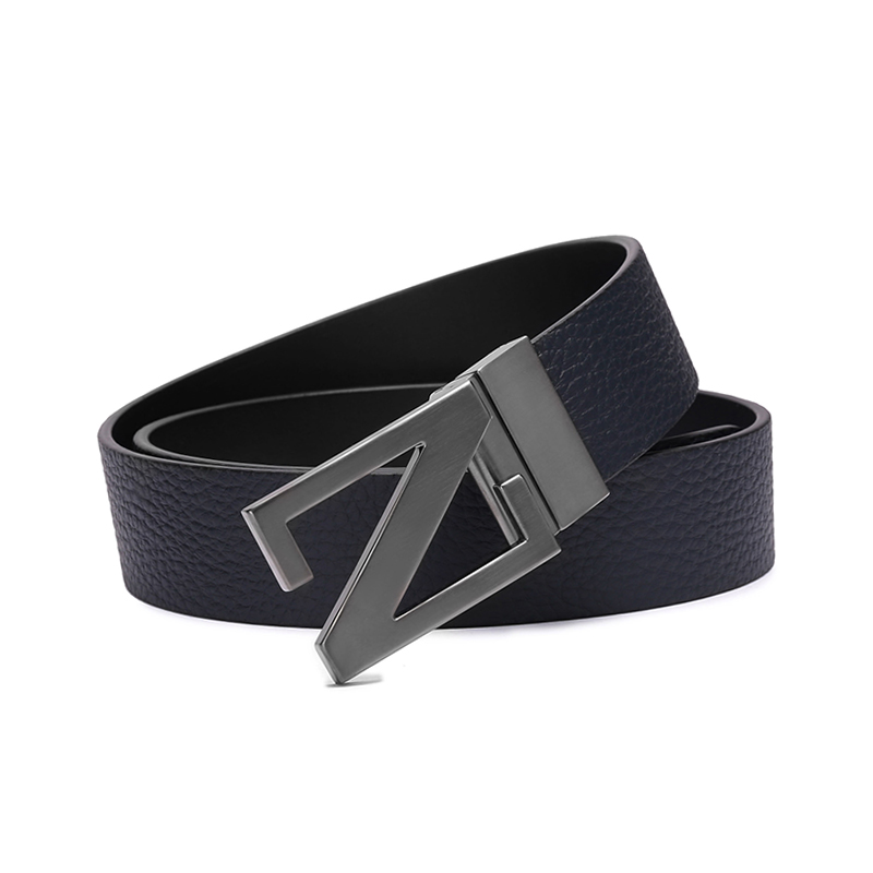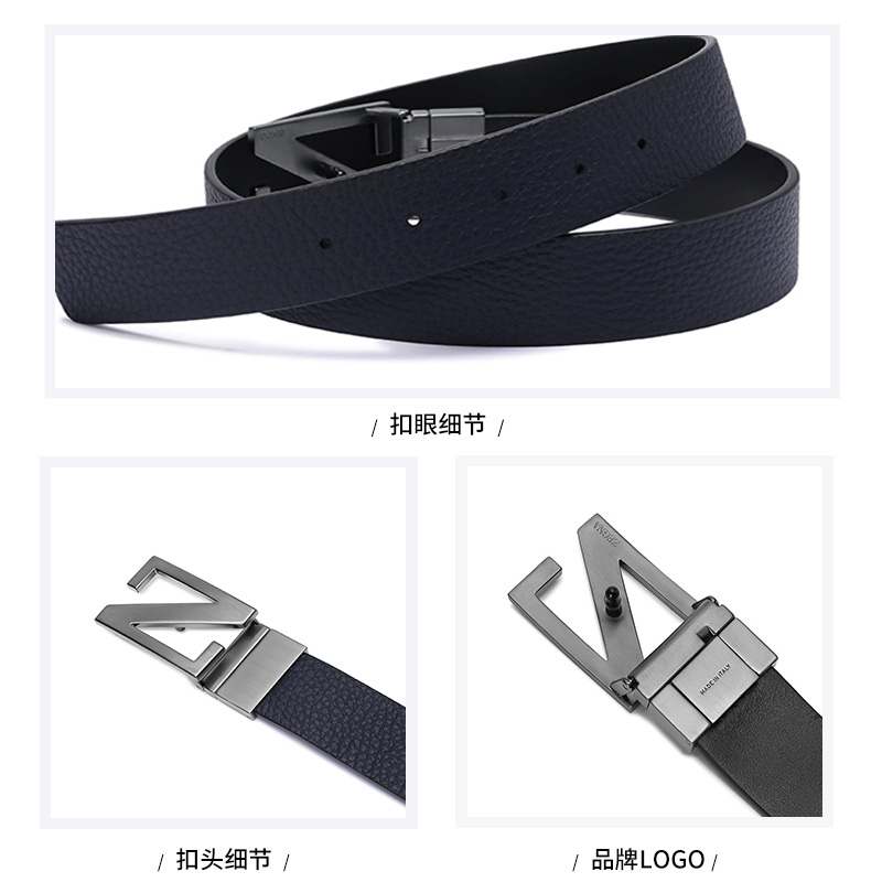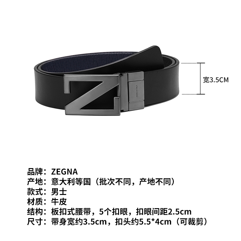 自营ZEGNA 杰尼亚 新品 男士牛皮海军蓝/黑色Z字搭扣可裁剪双面旋转皮带腰带3.5cm LHBOV B027UZ MNO