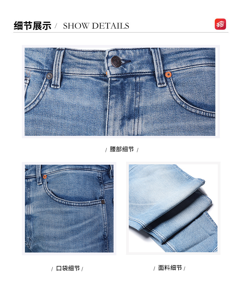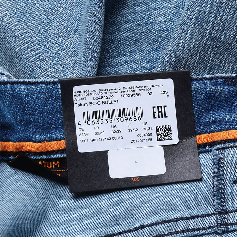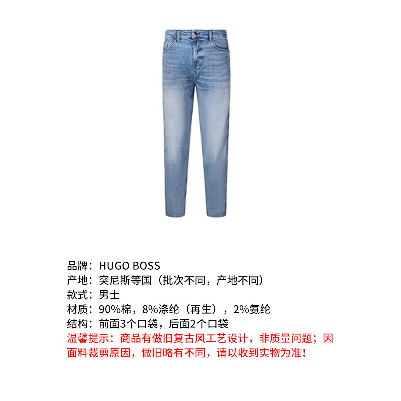 自营Hugo Boss 雨果博斯 男士orange系列棉质牛仔蓝色锥形牛仔裤长裤九分裤 50484272 433