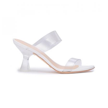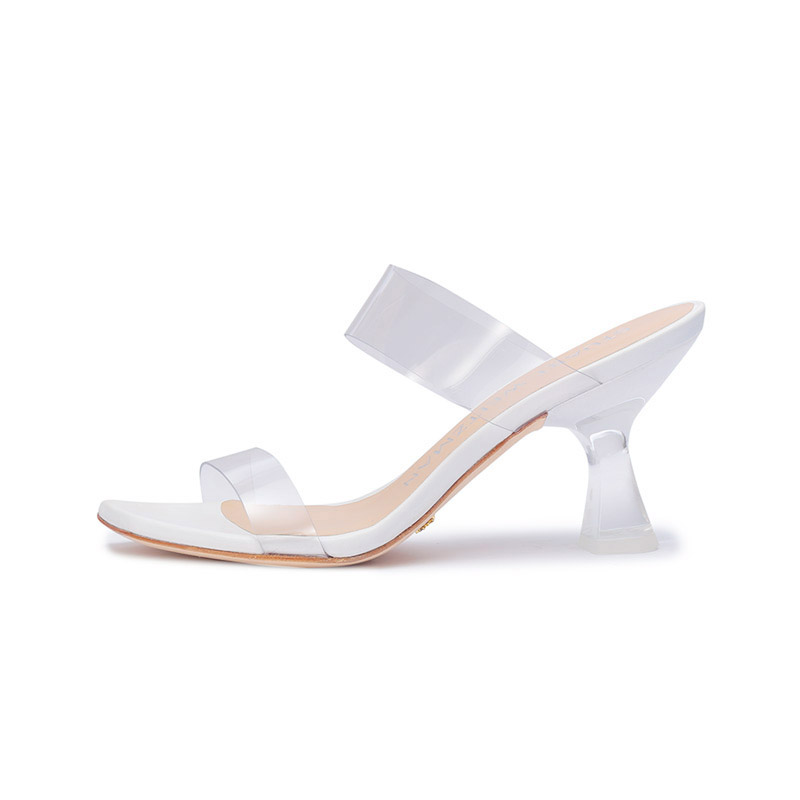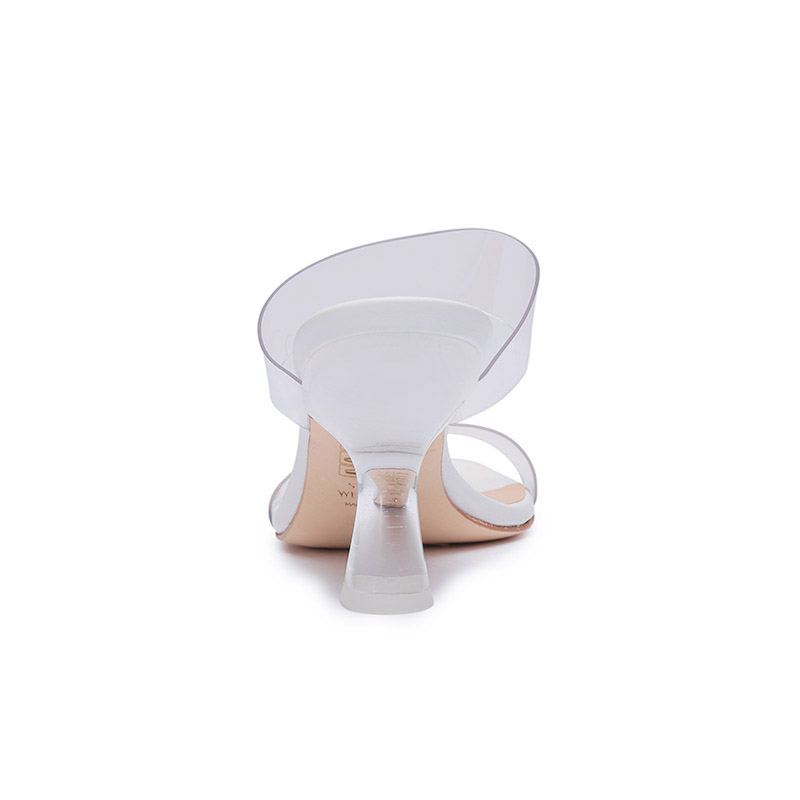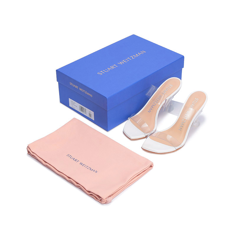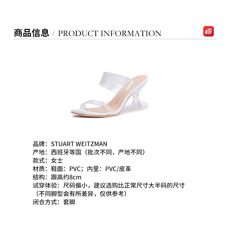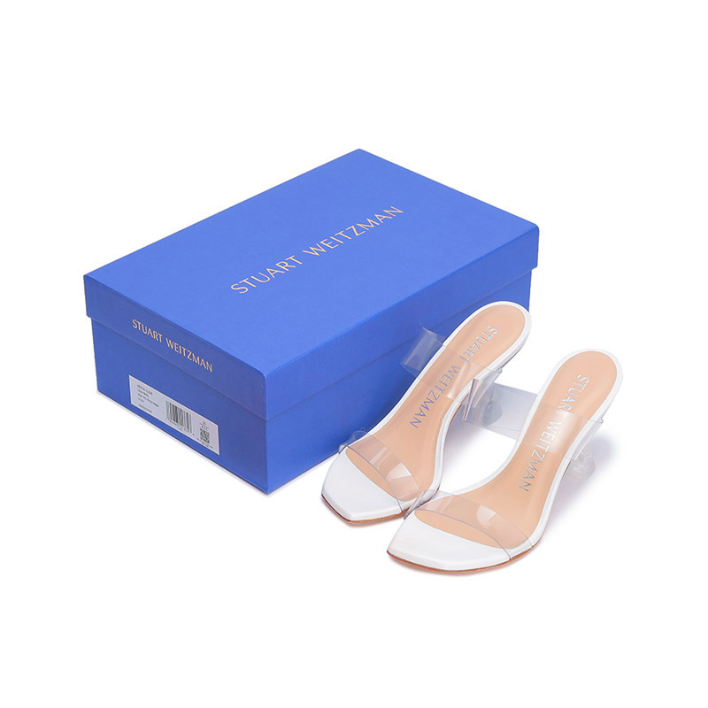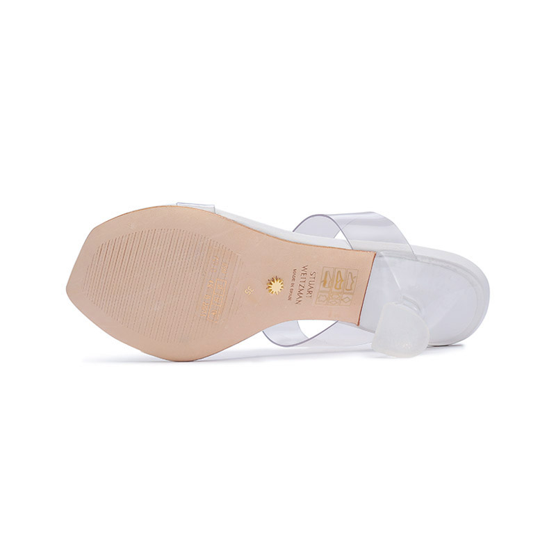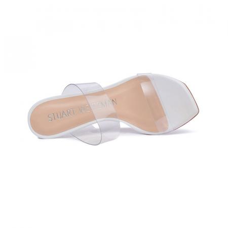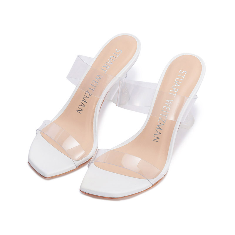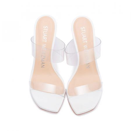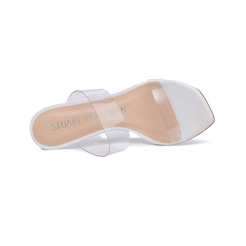 自营Stuart Weitzman 思缇韦曼 女士斜方头一字带高跟露跟凉鞋拖鞋透明/白色跟高8cm KRISTAL CLEAR CLEAR WHITE PDN PVC DRESS NAPPA