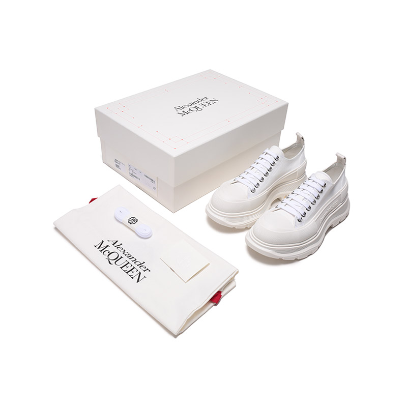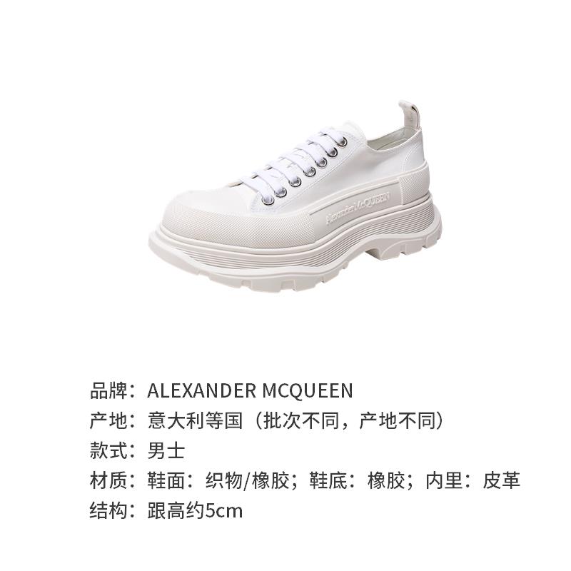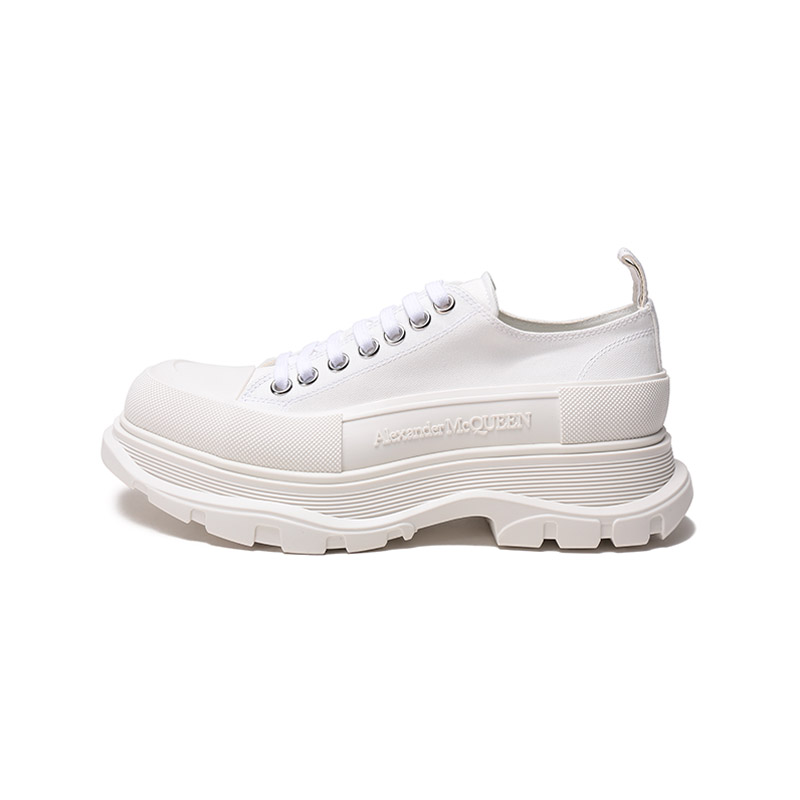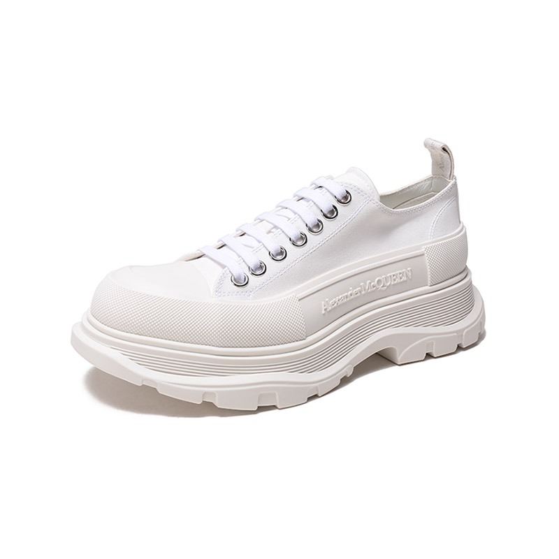 自营Alexander Mcqueen 亚历山大·麦昆 男士织物/橡胶白色Tread Slick系带厚底休闲鞋帆布鞋 705660 W4MV2 9000