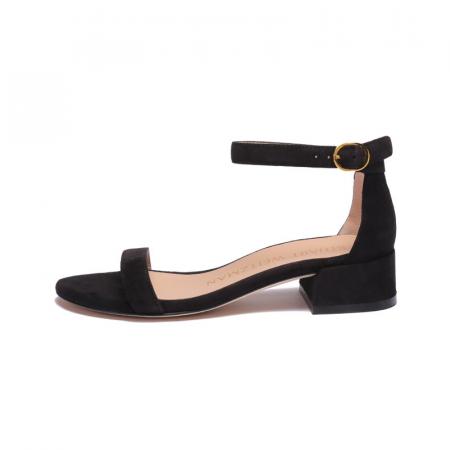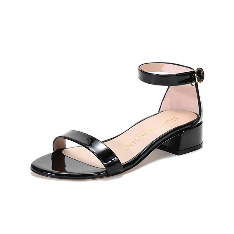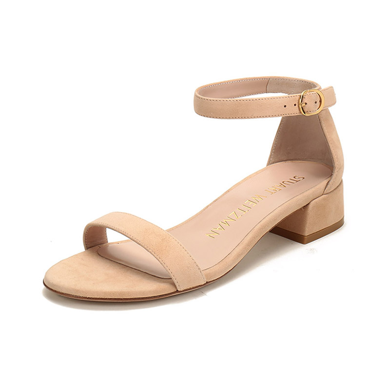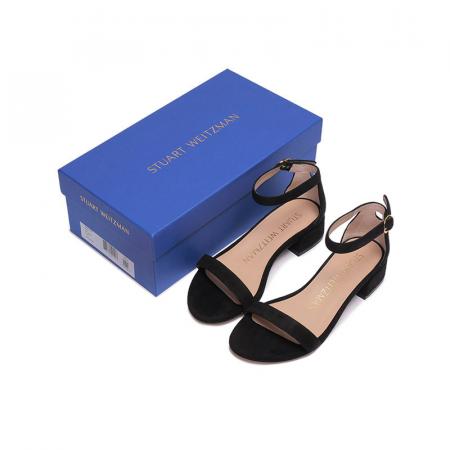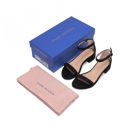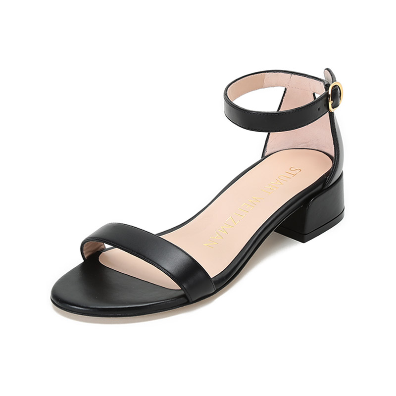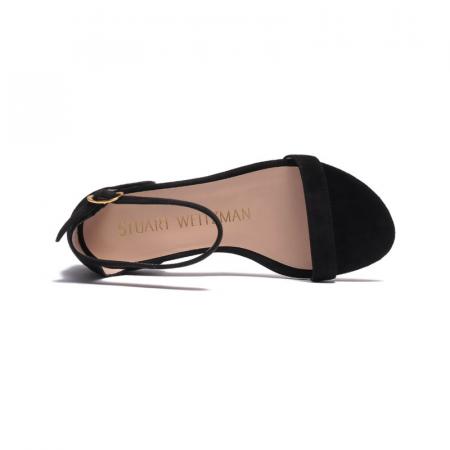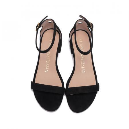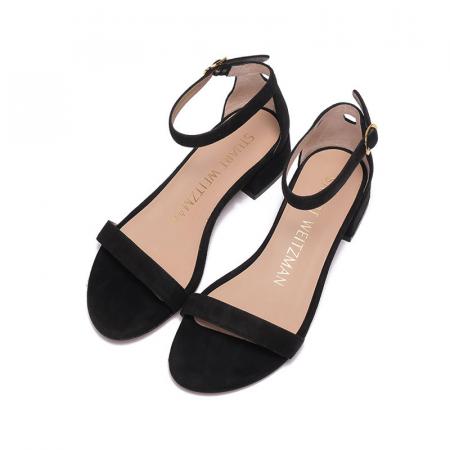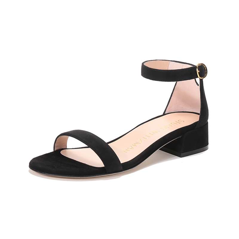 自营Stuart Weitzman 思缇韦曼 女士绒面革一字带圆头粗中跟凉鞋黑色 NUDISTJUNE BLACK SUE SUEDE