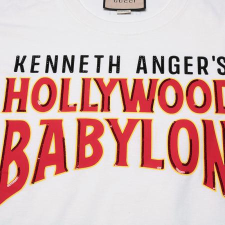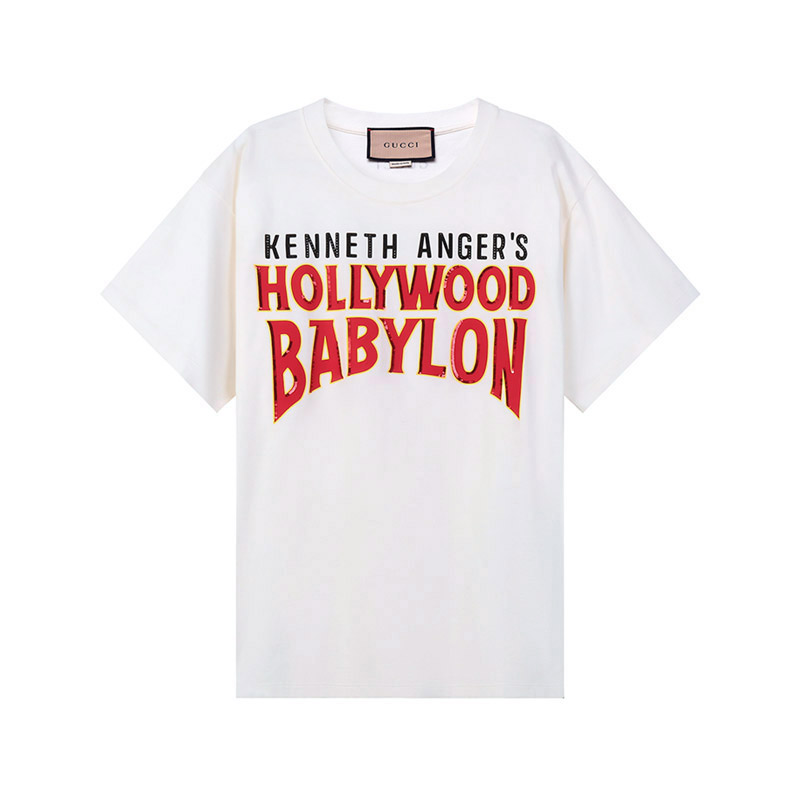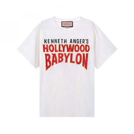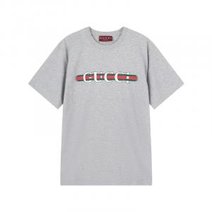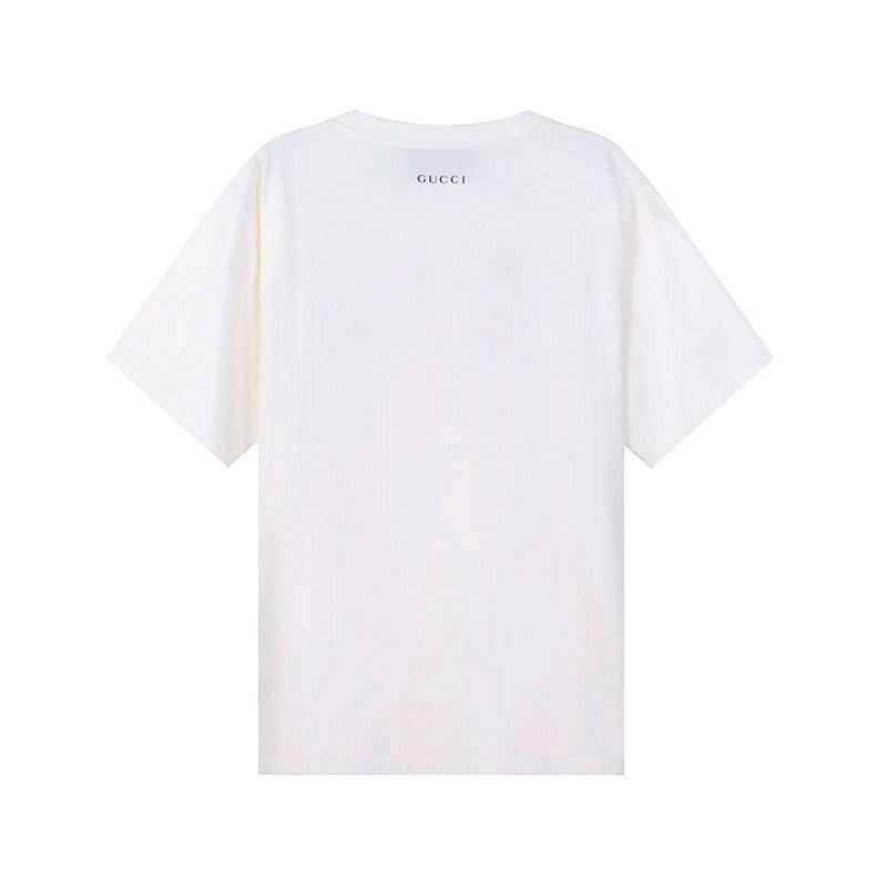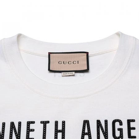 自营Gucci 古驰 男士棉质白色字母印花宽松版圆领短袖T恤 616036 XJEJU 9095