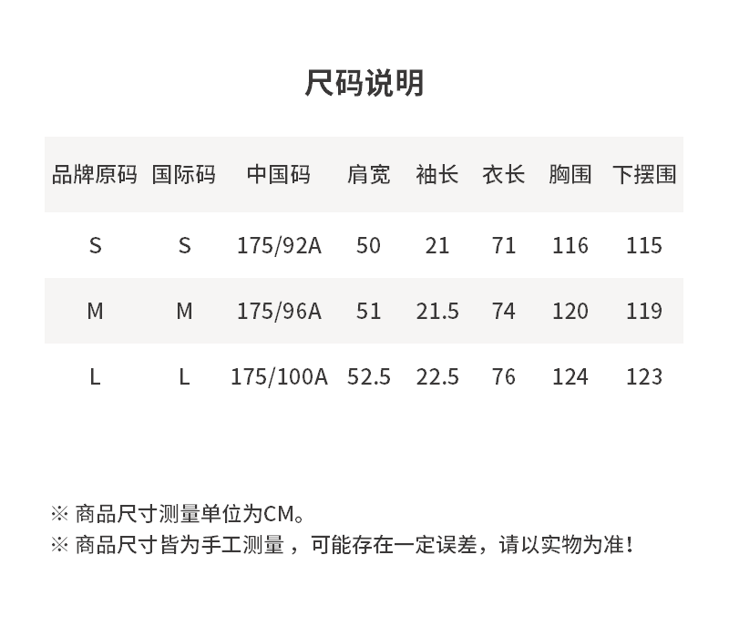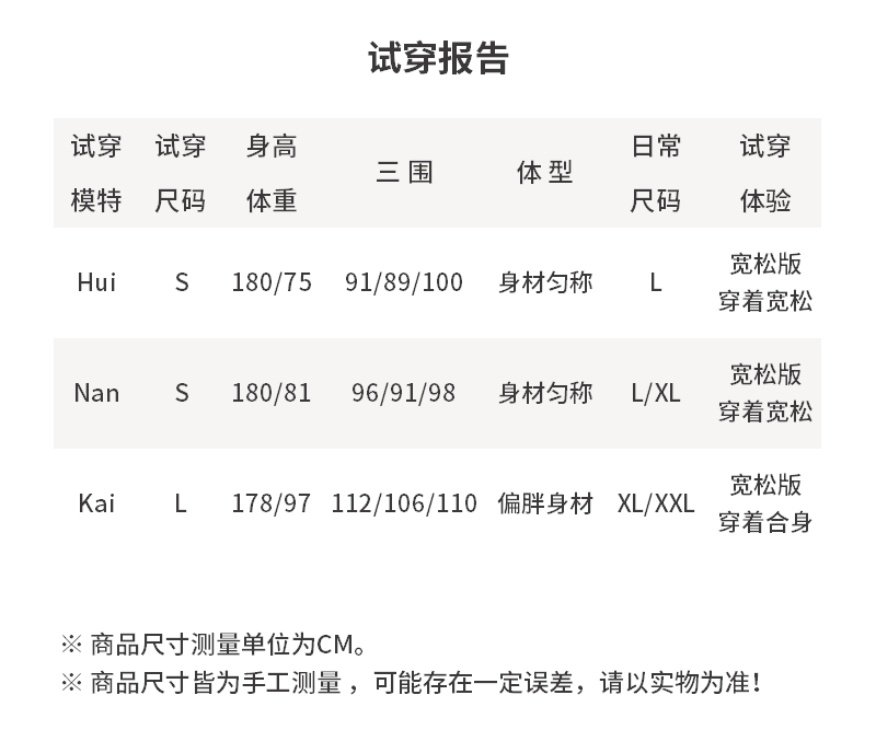 - 尺码说明