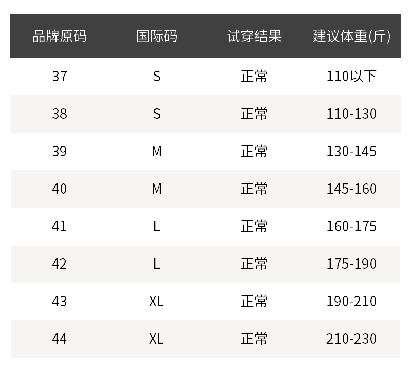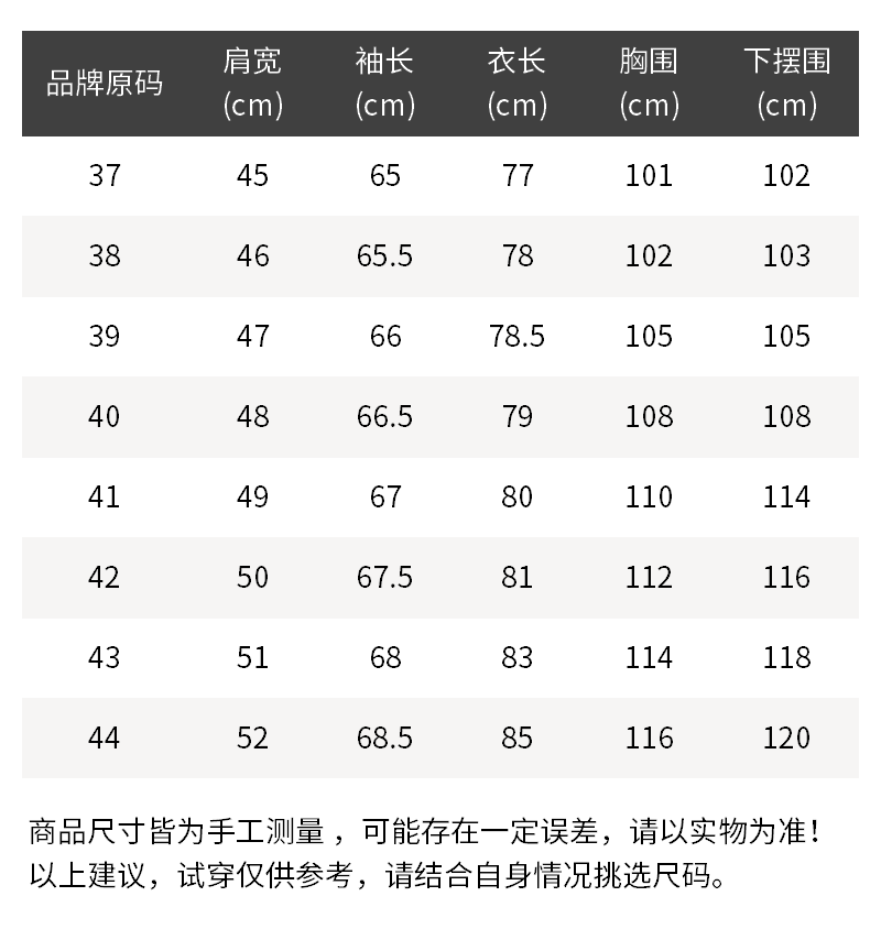 - 尺码说明