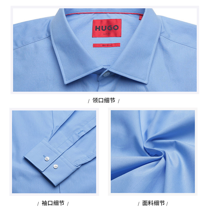 自营Hugo Boss 雨果博斯 【新品】男士HUGO系列棉质蓝色修身版长袖衬衫 50289499 459