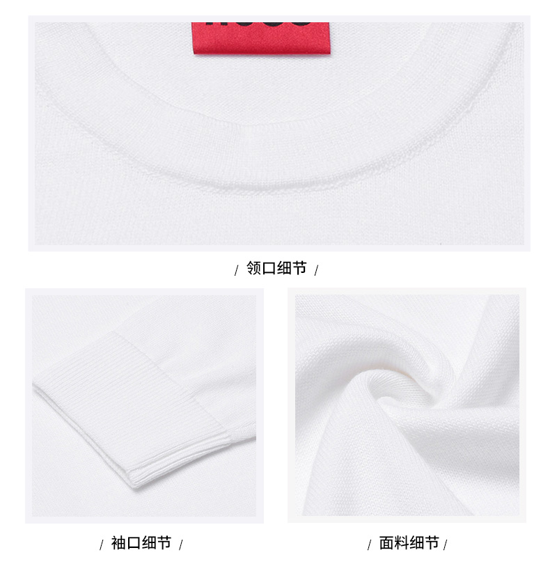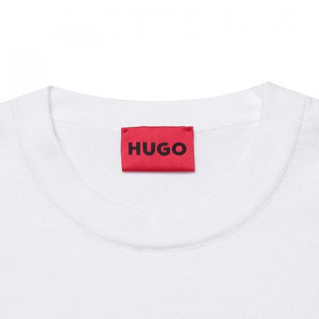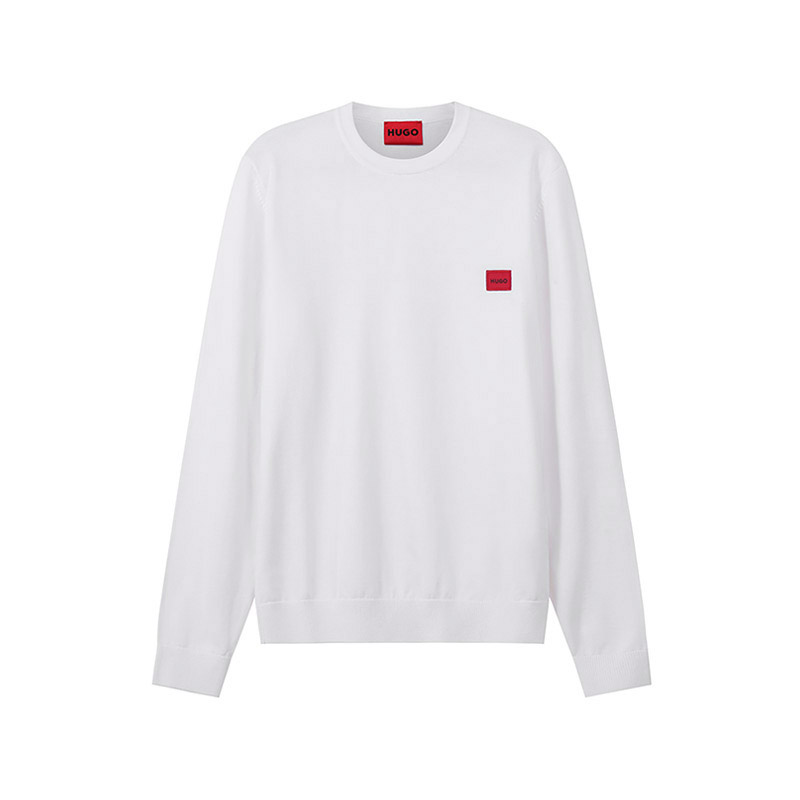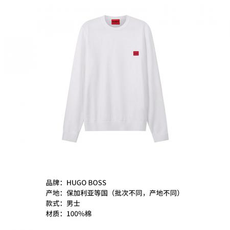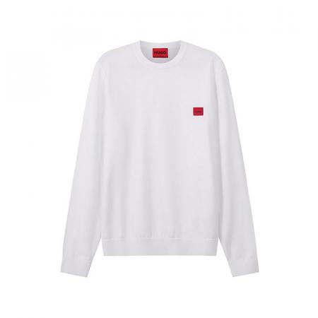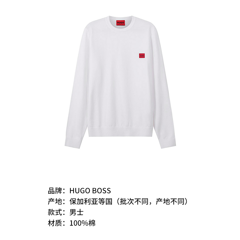 自营Hugo Boss 雨果博斯 男士HUGO系列棉质奶白色徽标贴片薄款圆领针织衫 50472311 100