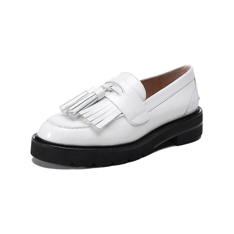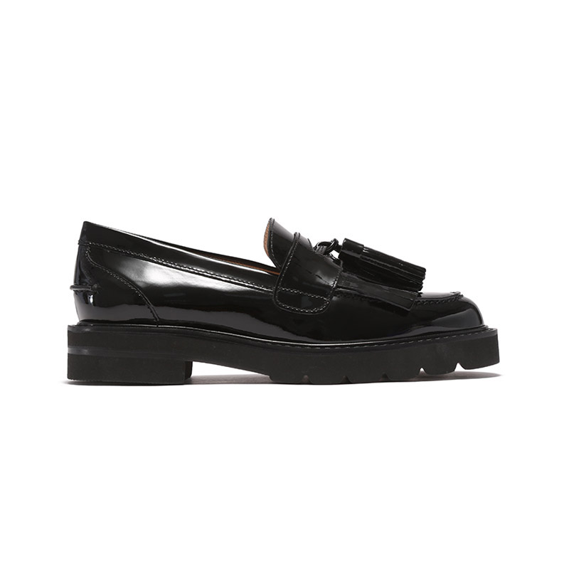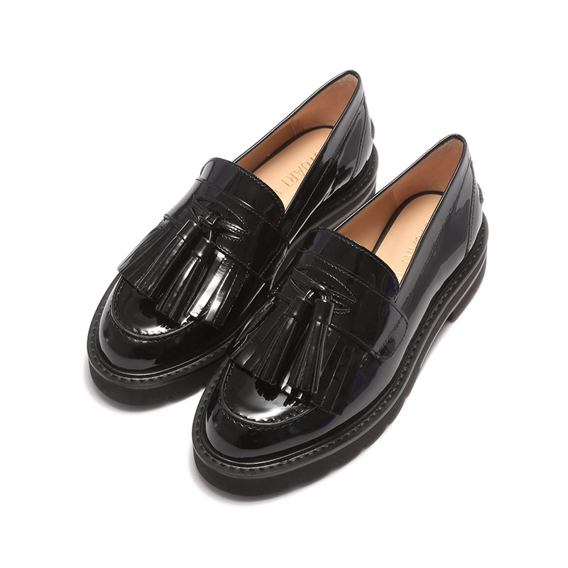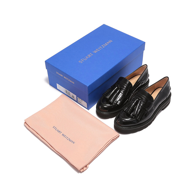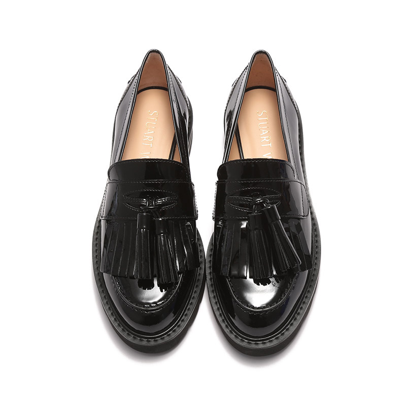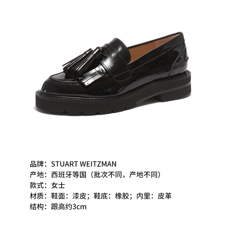 自营Stuart Weitzman 思缇韦曼 女士漆皮黑色流苏装饰单鞋乐福鞋皮鞋 MILA LIFT BLACK PAT PATENT
