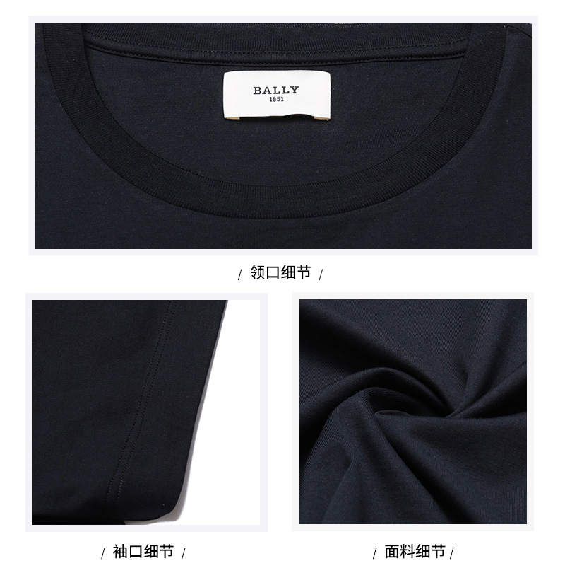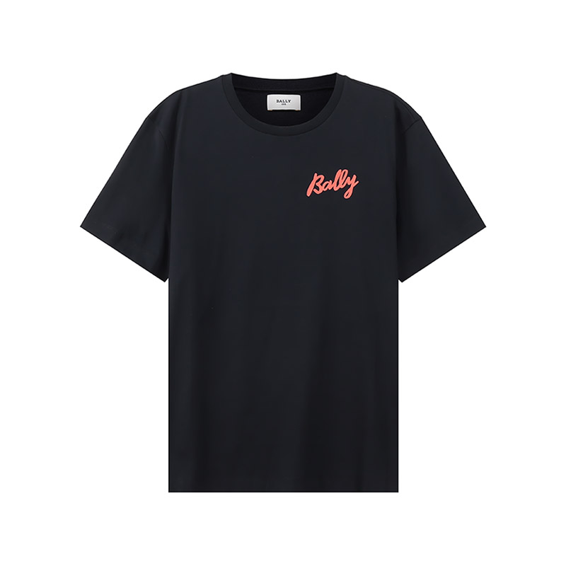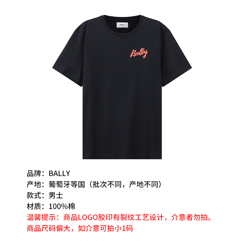 自营Bally 巴利 男士棉质黑色LOGO胶印圆领短袖T恤 M5BA908F 9G9 6302825
