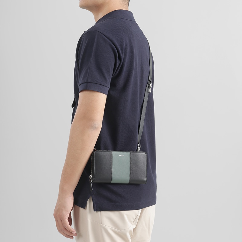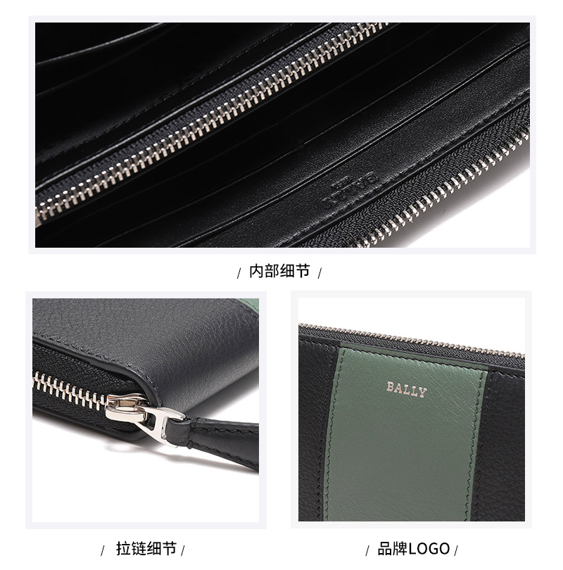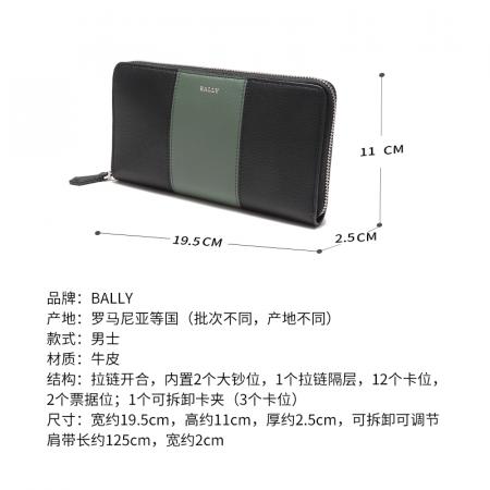 自营Bally 巴利 男包 男士牛皮黑色青绿色单肩斜挎包长款钱包钱夹带卡夹 BHYTUS HP 9G7 6303616