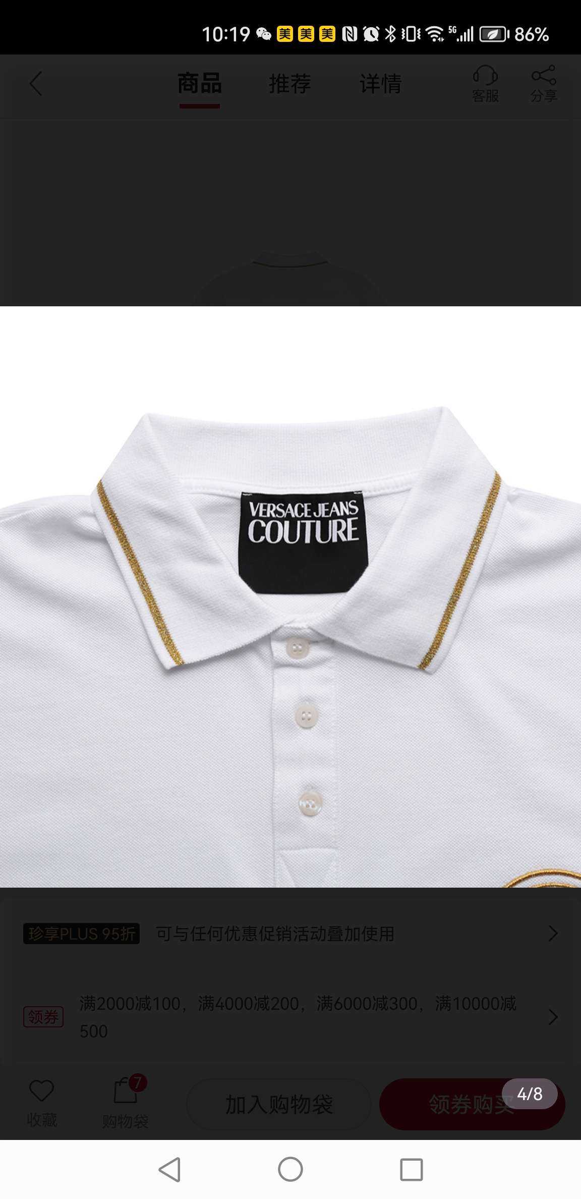 自营Versace Jeans Couture 范思哲 男士棉质白色V字徽章刺绣短袖POLO衫 74GAGT06 CJ01T G03