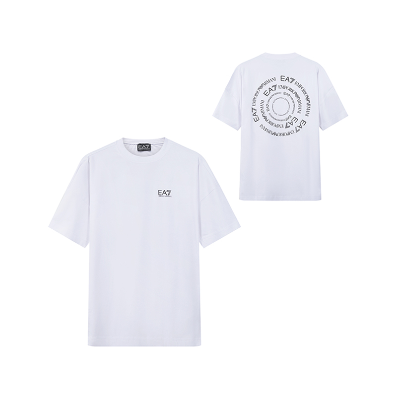 自营EA7 阿玛尼 男士棉质白色LOGO胶印宽松版圆领短袖T恤 3RPT12 PJLBZ 0100