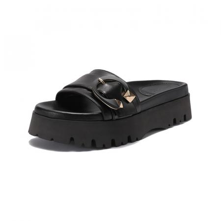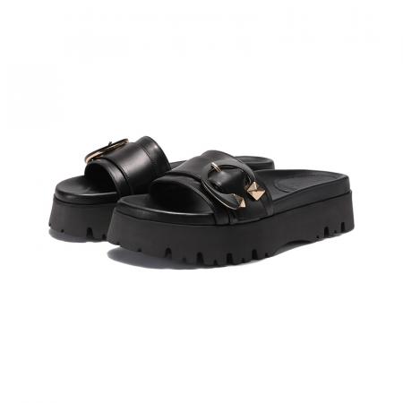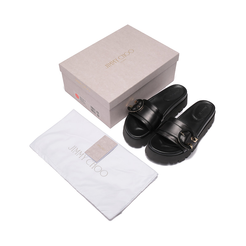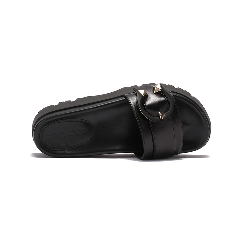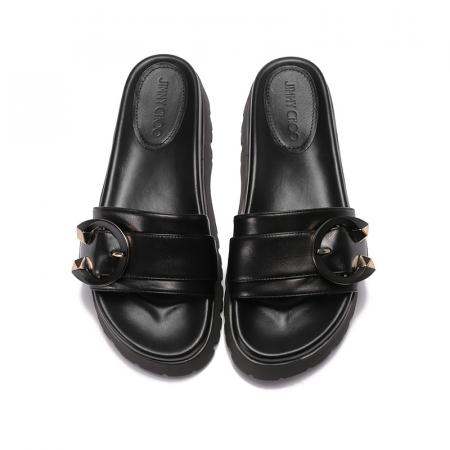 自营Jimmy Choo 周仰杰 女士皮革黑色C饰扣厚底鞋凉鞋拖鞋跟高5.5cm MAITI FLAT NMQ 231 BLACK BLACK