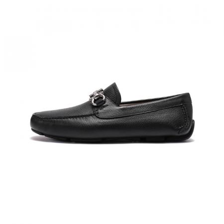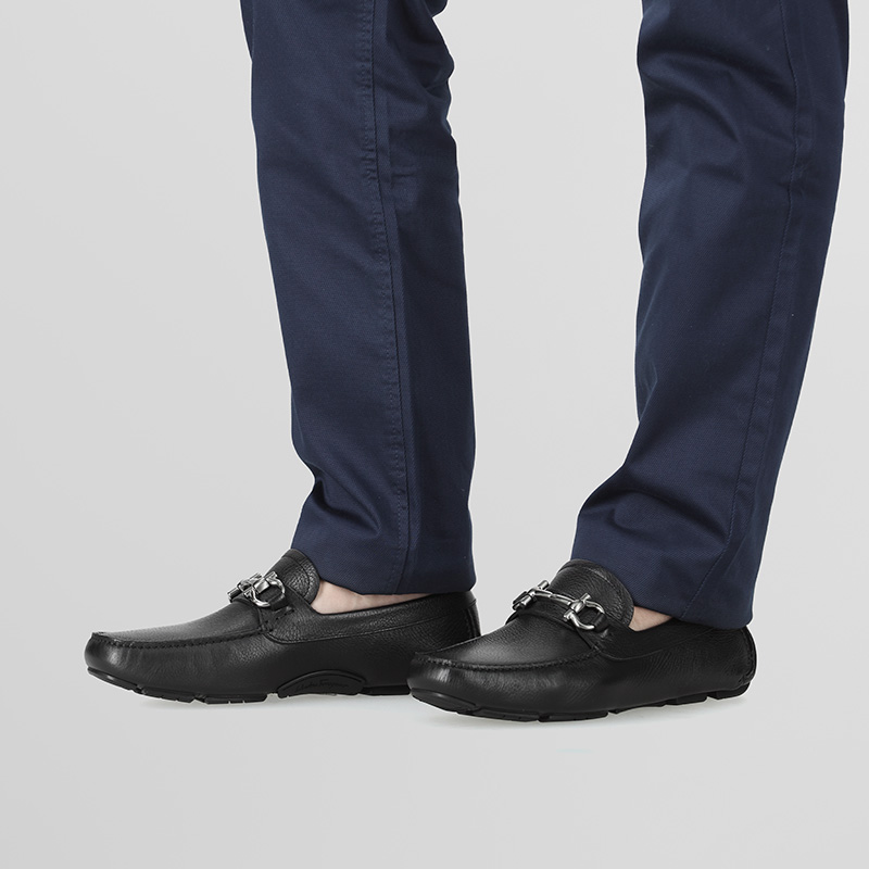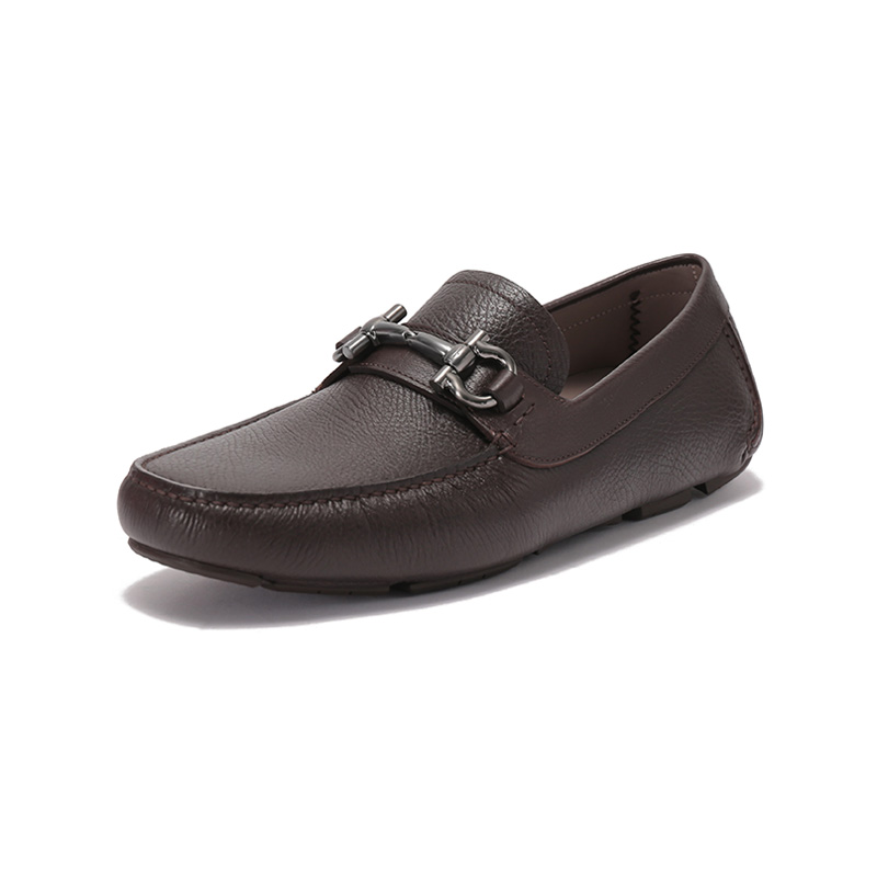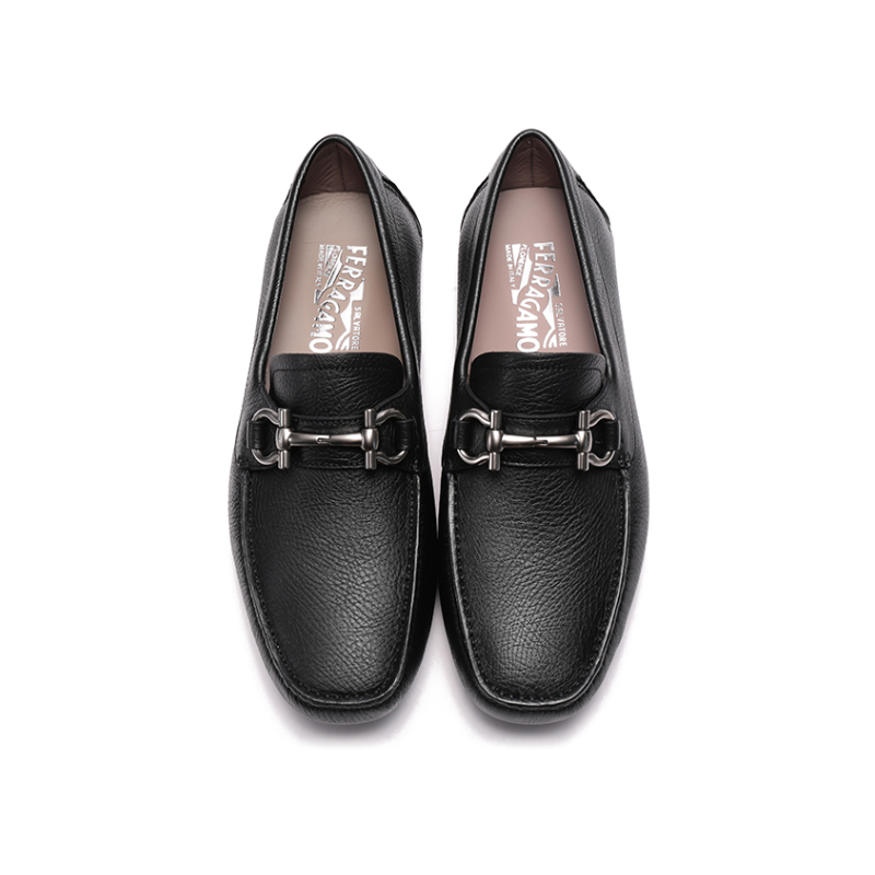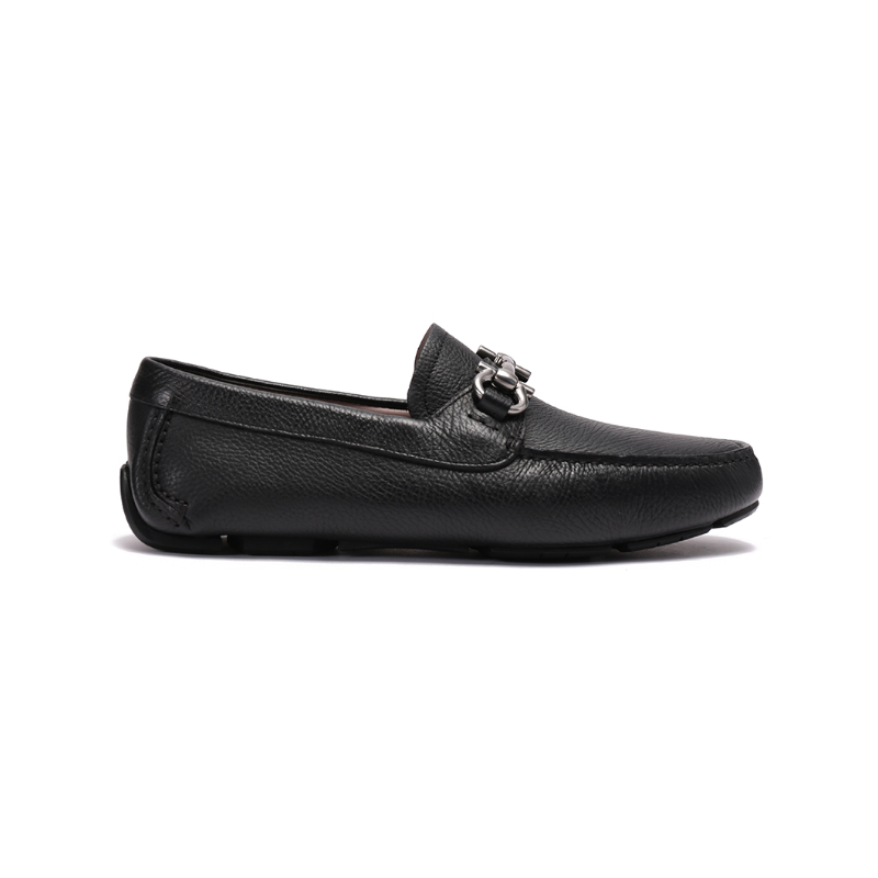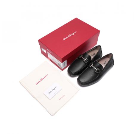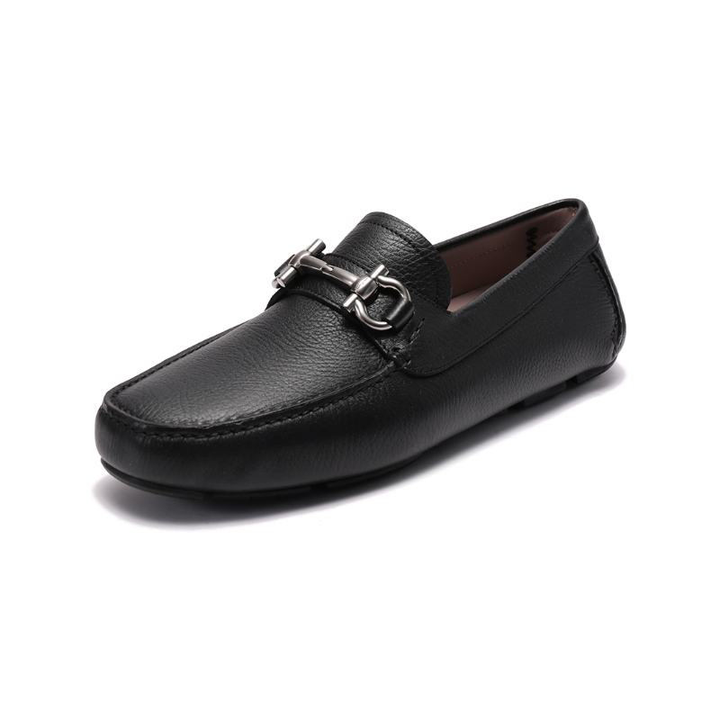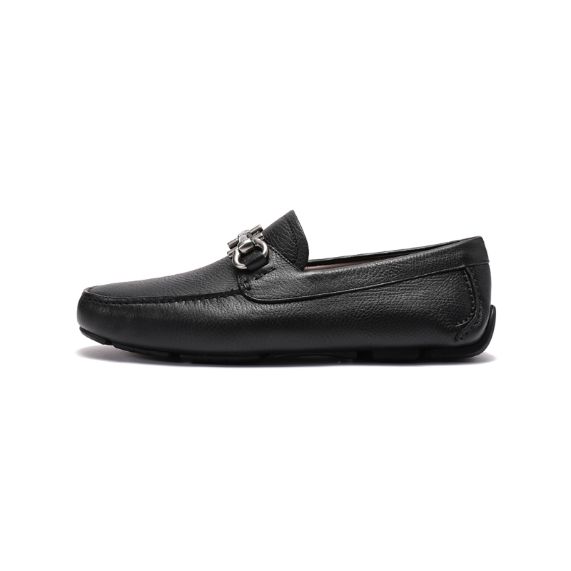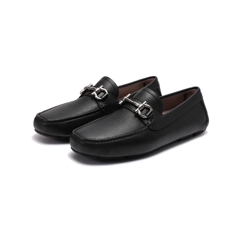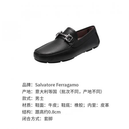 自营Ferragamo 菲拉格慕 【新品】男士PARIGI NEW系列牛皮黑色Gancini扣饰乐福鞋单鞋皮鞋驾驶鞋 0755610