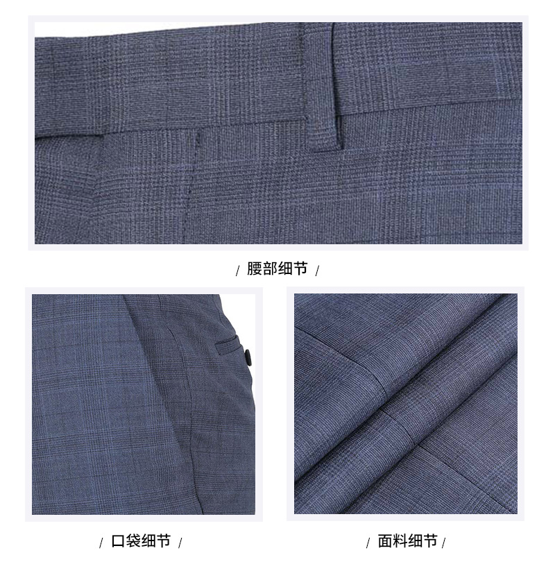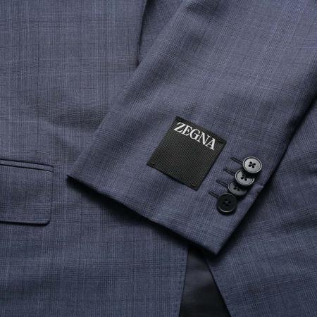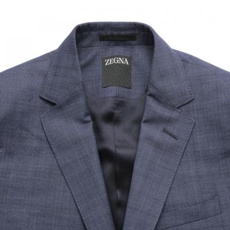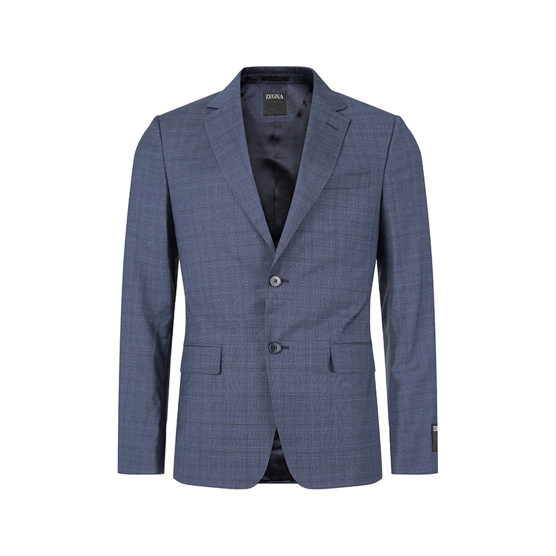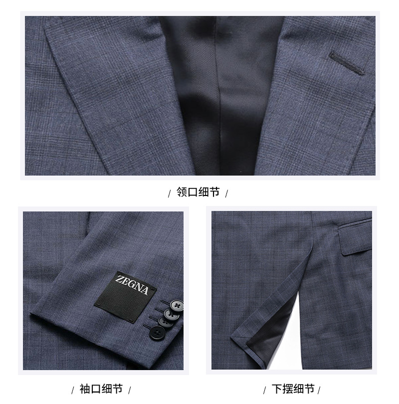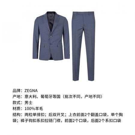自营ZEGNA 杰尼亚 春秋款 男士灰蓝色格纹商务西装西裤西服套装 522745A5 281CGA