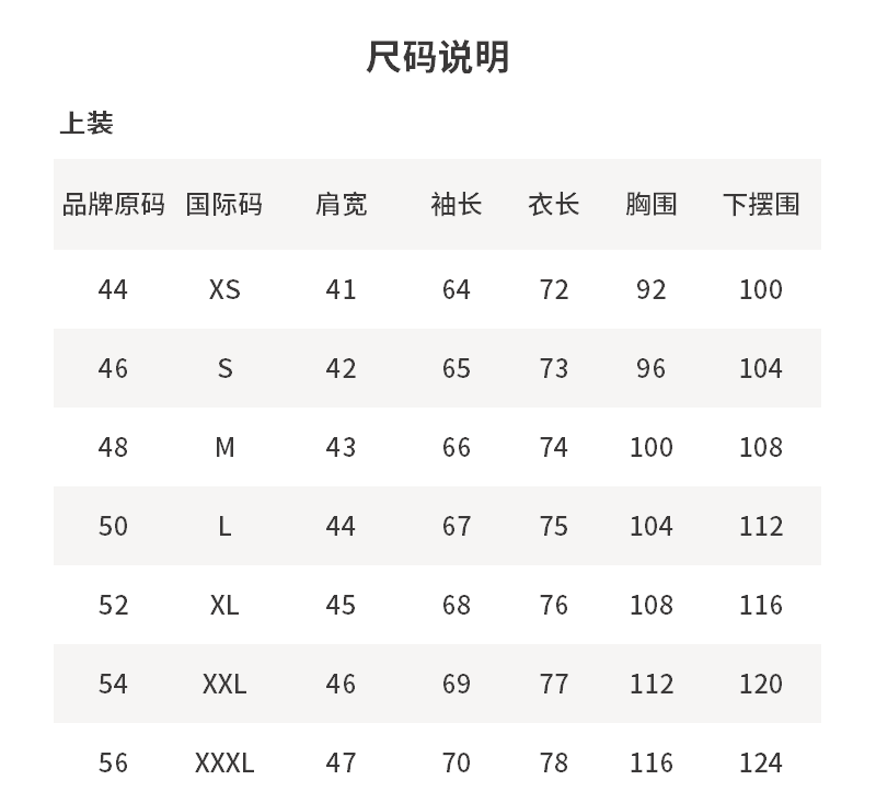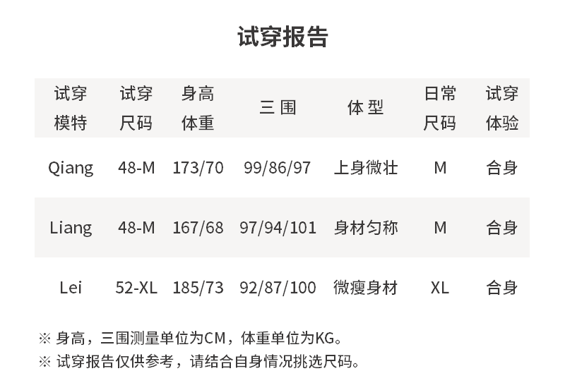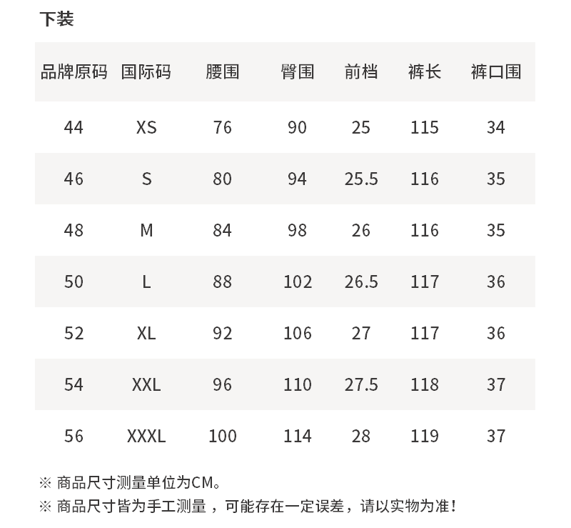 - 尺码说明
