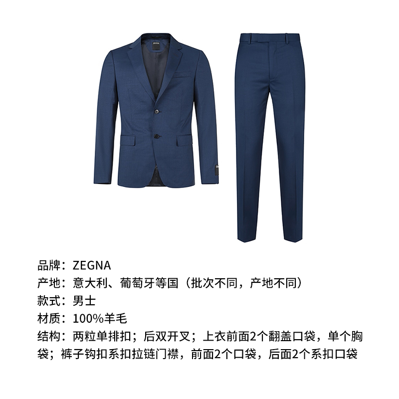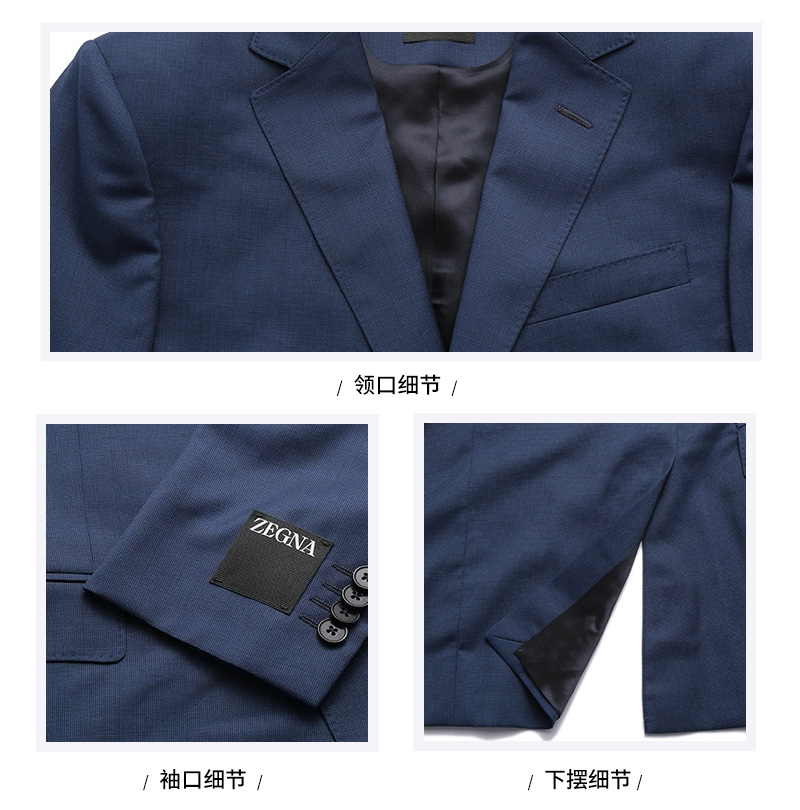 自营ZEGNA 杰尼亚 春秋款 男士蓝色小格纹商务西装西裤西服套装 522752A5 281CGA