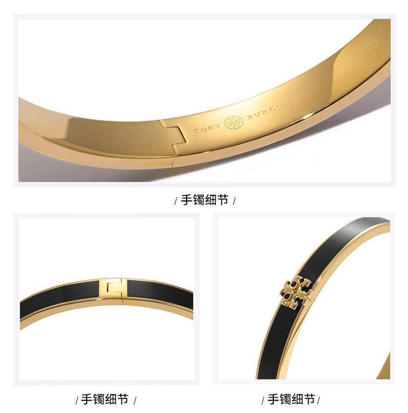 自营Tory Burch 汤丽柏琦 【新品】女士KIRA系列Tory金/黑色双T LOGO手镯手环 90550 720