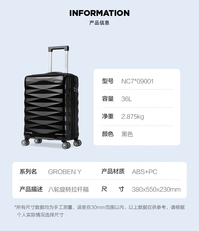 American Tourister 美旅拉杆箱行李箱 商务登机箱旅行箱 NC7 【黑】20英寸可登机旋转轮