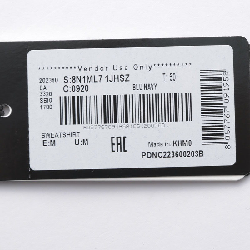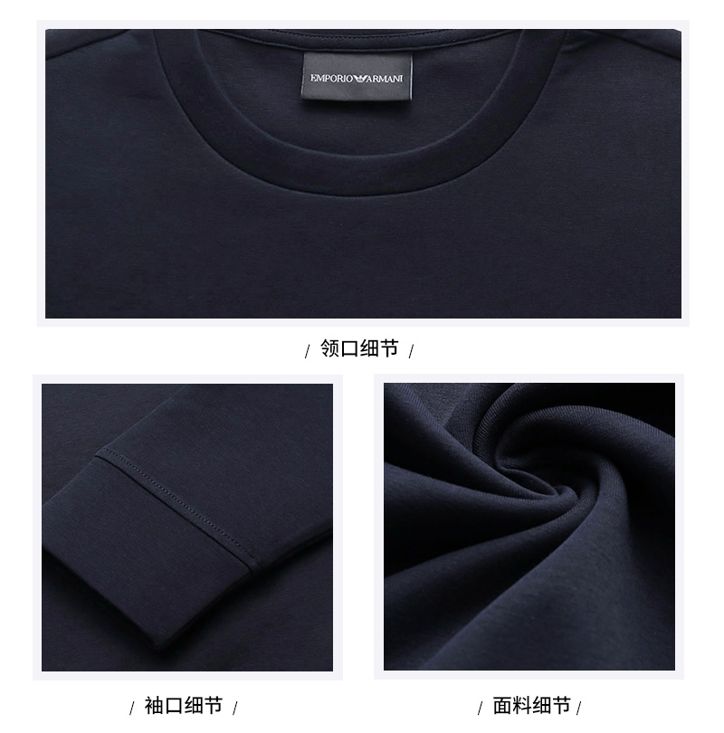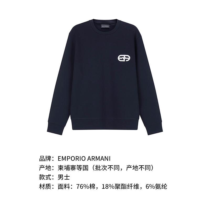 自营Emporio Armani 阿玛尼 男士棉质海军蓝色徽标刺绣圆领长袖卫衣运动衫 8N1ML7 1JHSZ 0920