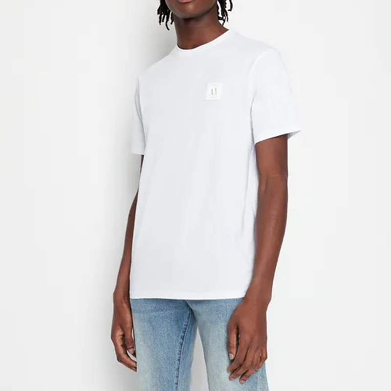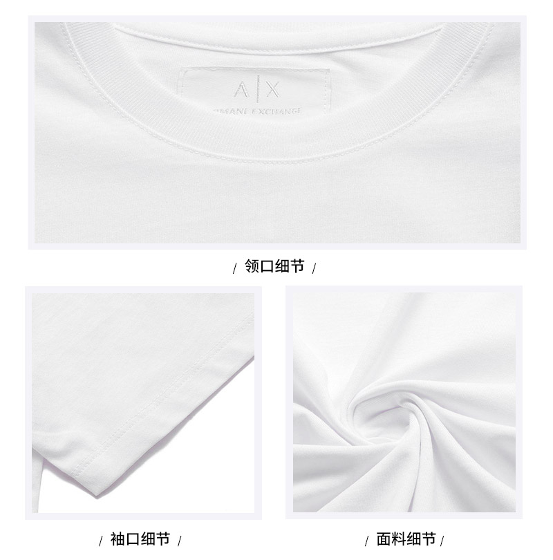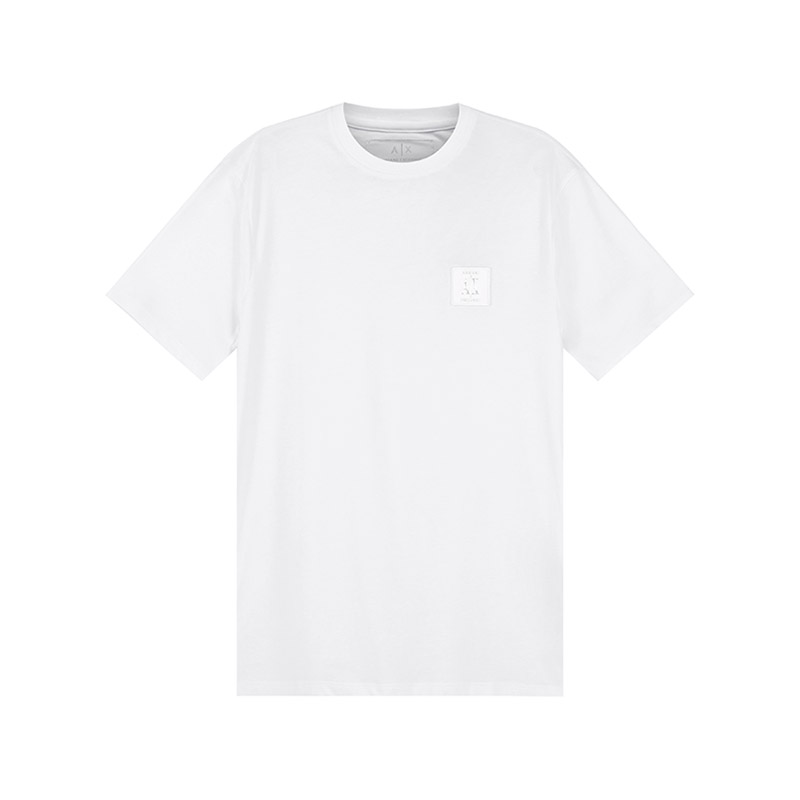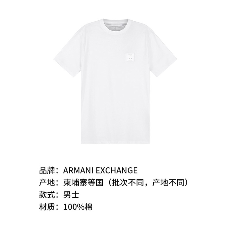 自营Armani Exchange 阿玛尼 男士棉质白色小徽标贴饰圆领短袖T恤 8NZTPR ZJH4Z 1100