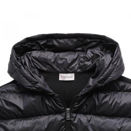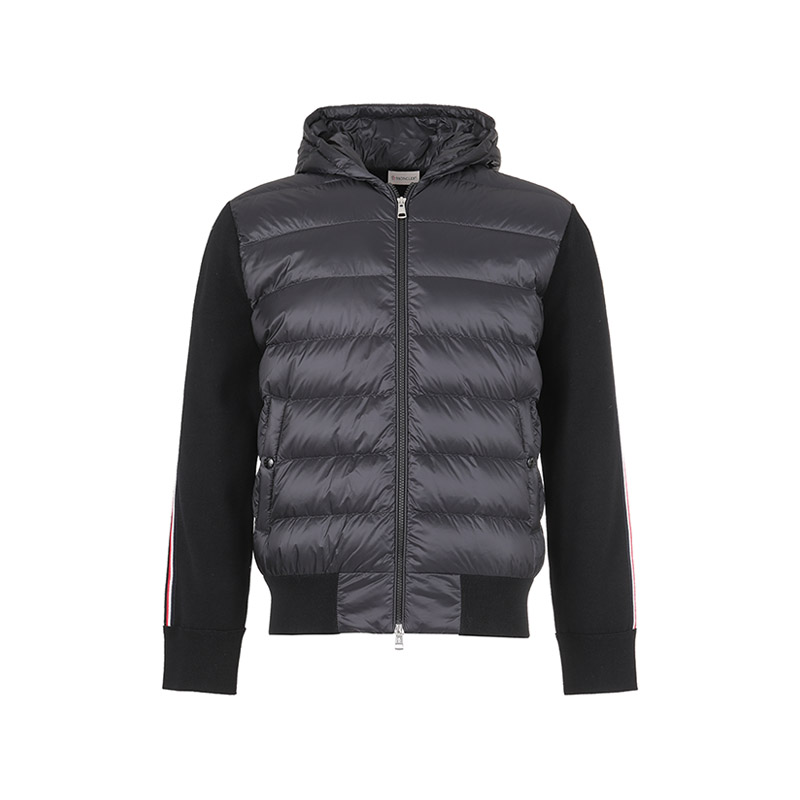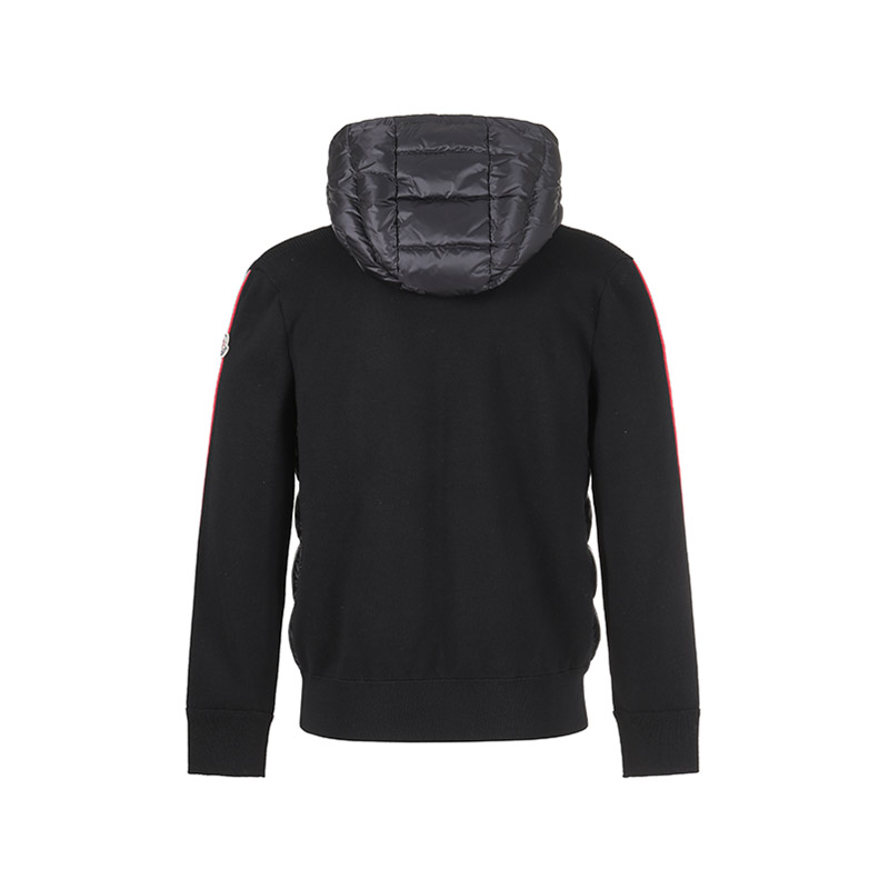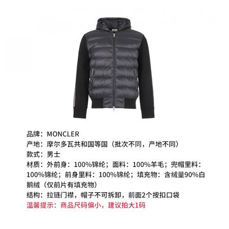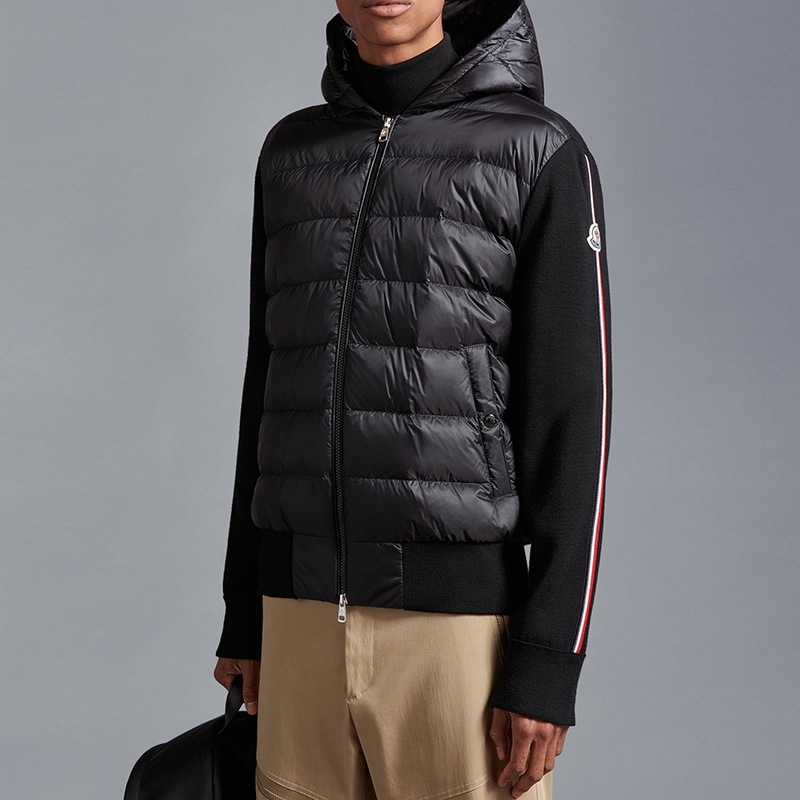 自营Moncler 盟可睐/蒙口 男士黑色三色饰边毡艺徽标衬垫半羽绒开衫鹅绒连帽拉链夹克上衣外套 I2 091 9B00008 M1131 999